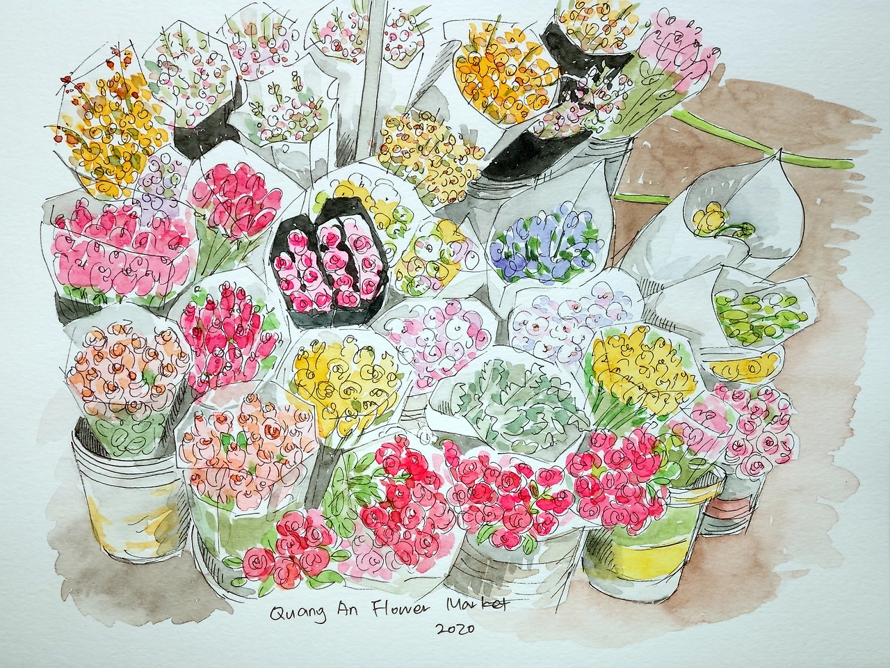 하노이 꽝안 꽃시장한국에선 바쁘기도 했고, 장미 한 송이만 해도 3천원은 되기 때문에 기분 내키는대로 꽃을 사게 되지는 않았습니다. 게다가 어린아이 둘을 키우다 보니 행여나 아이들이 꽃을 입에 대거나 화병이 깨져 다칠까봐 꽃과 더 멀어졌고요. 근데 베트남에선 낮에 혼자 한가롭게 보낼 시간이 있고 꽃을 살 곳도 많아 자연스럽게 주기적으로 꽃을 사러 가게 되었습니다. 처음엔 마트와 시장에서 파는 꽃다발을 사다가 서호 쪽에 하노이에서 제일 큰 꽃 도매시장이 있다는 걸 알고 자주 가게 되었습니다.