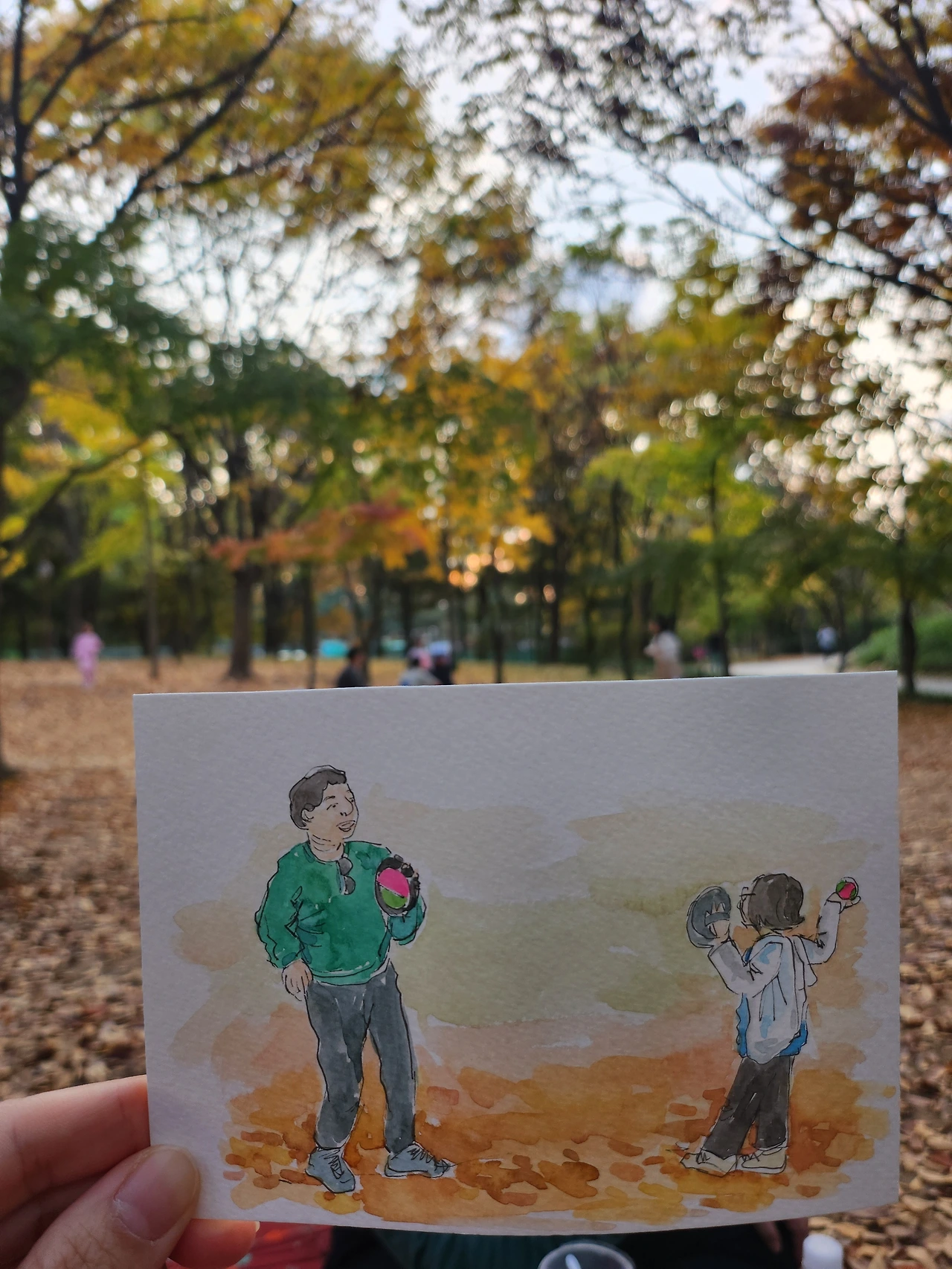 세상에서 가장 아름다운 부녀의 캐치볼 장면을 그려봅니다.