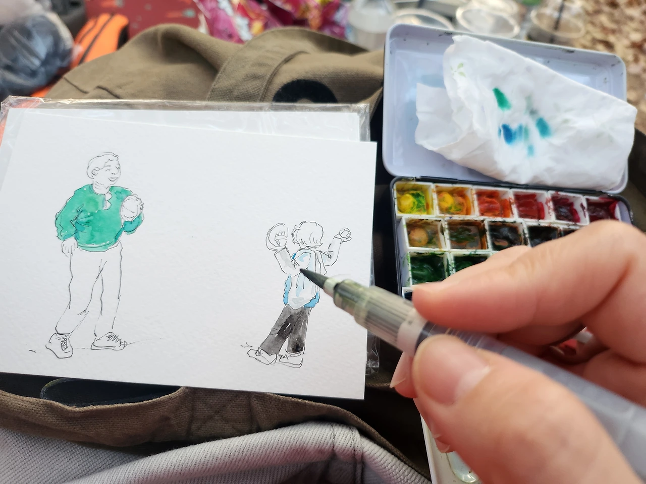 주섬주섬 가방에서 작은 스케치북을 꺼내