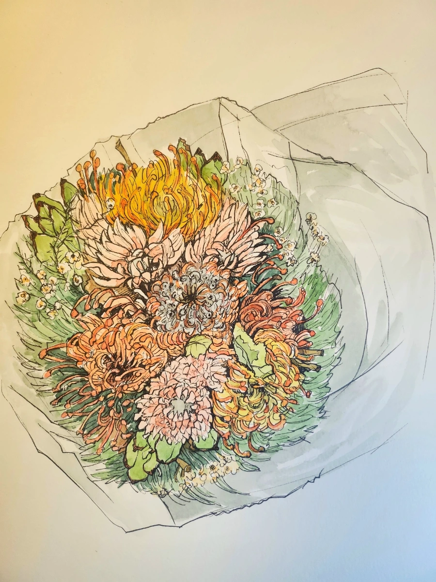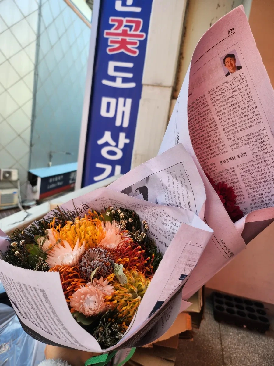 솔잎 같은 나무도 같이 다발로 묶여 있어 여리여리한 다른 꽃들보다는 오래 보기를 바라면서요.