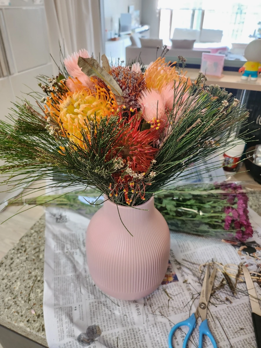 집에 돌아와 분홍색 화병에 꽂으니 찰떡~