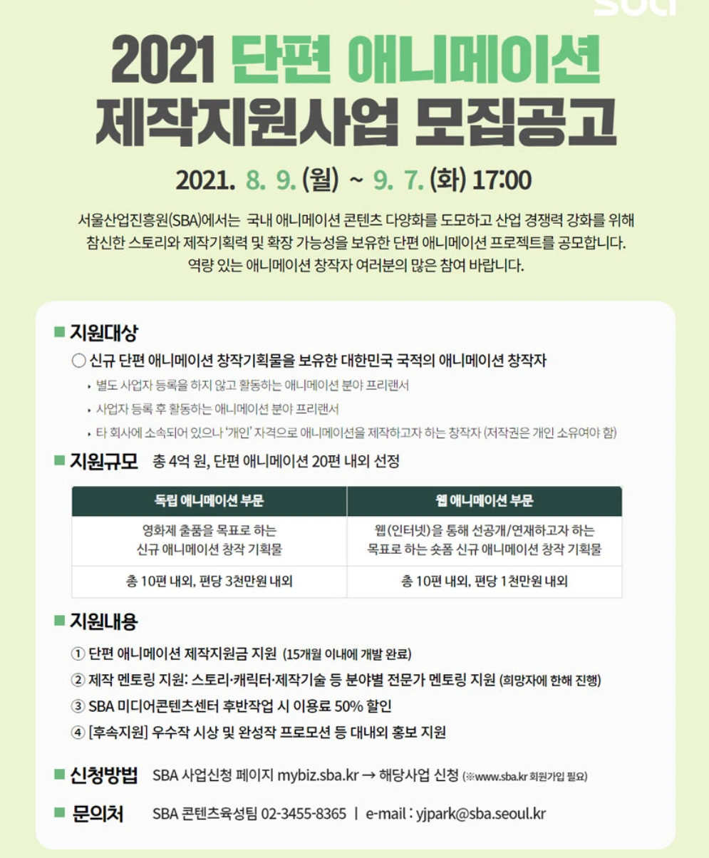 우리나라에는 많은 단편 애니메이션 제작 지원 사업이 많이 있는데 주로 한국콘텐츠진흥원, 서울산업진흥원, 영화진흥위원회(중편 애니메이션), 부천 애니메이션 페스티벌에서 진행되고 있다. 이 중 8월부터 진행하는 서울산업진흥원의 제작지원 프로그램의 지원기간이 맞았다.