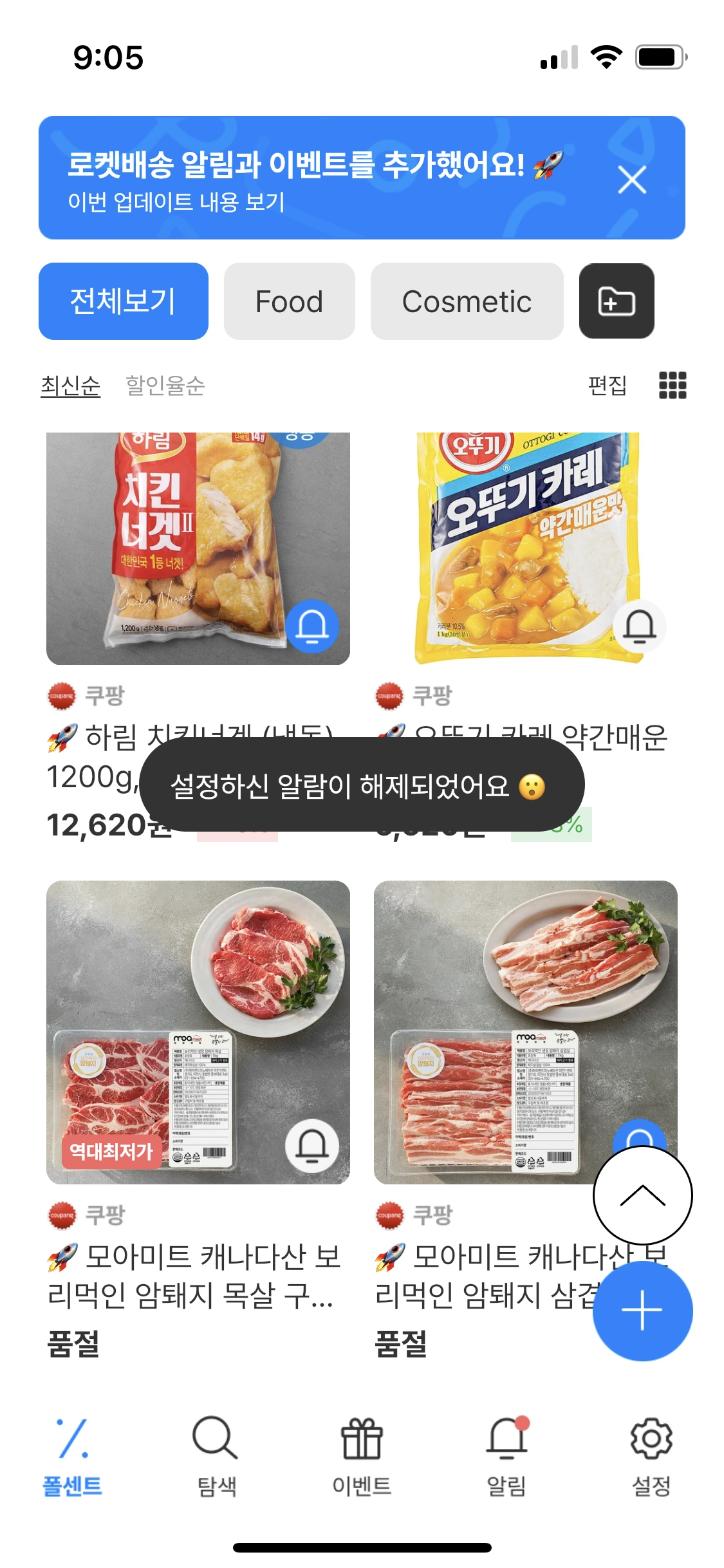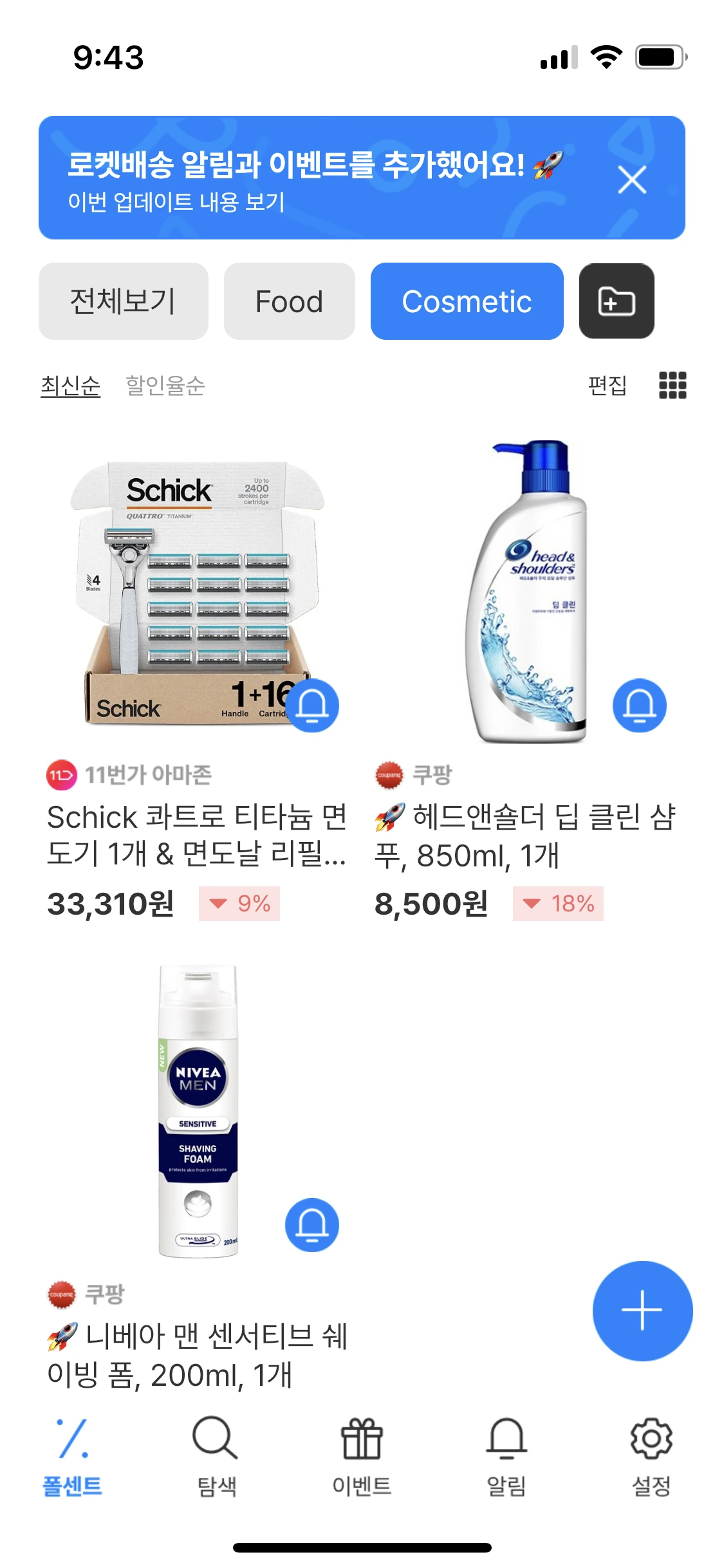 그러던 중 맥 유저 카페에서 앱 홍보 글 하나를 발견했다. 앱의 이름은 폴센트, 쿠팡에서 판매 중인 상품을 등록하면 최저가가 되었을 때 알림을 보내주는 것이 주요 서비스다.