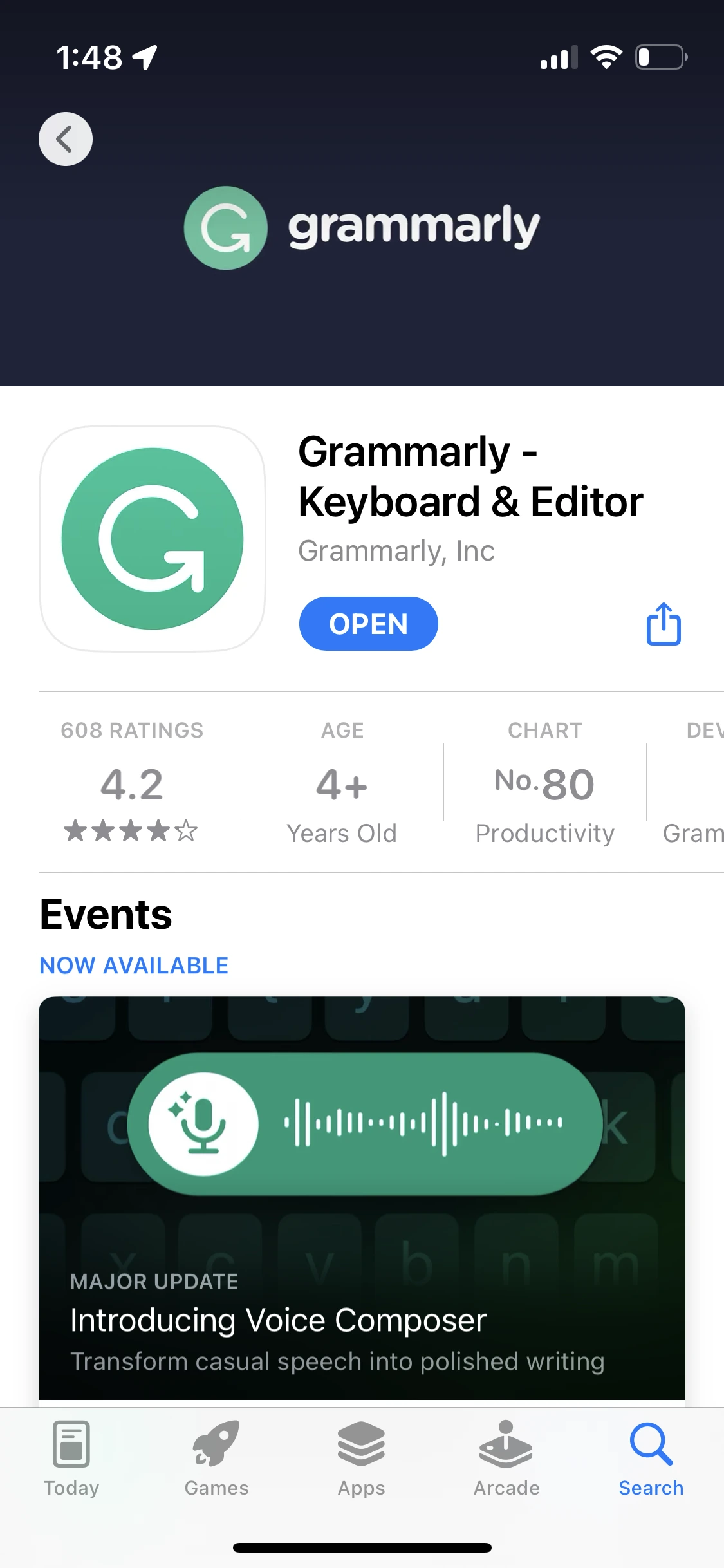 앱스토어를 뒤적거리다가 Grammarly라는 앱을 발견했다. AI가 문법 교정과 어색한 문장을 교정해 준다. 그런데 놀라운 건 적합하지 않은 문장에 대해서 수정안까지 제시해 준다. 또한 모바일, PC 등 다양한 플랫폼을 지원하고 있는 것도 큰 장점이다.
