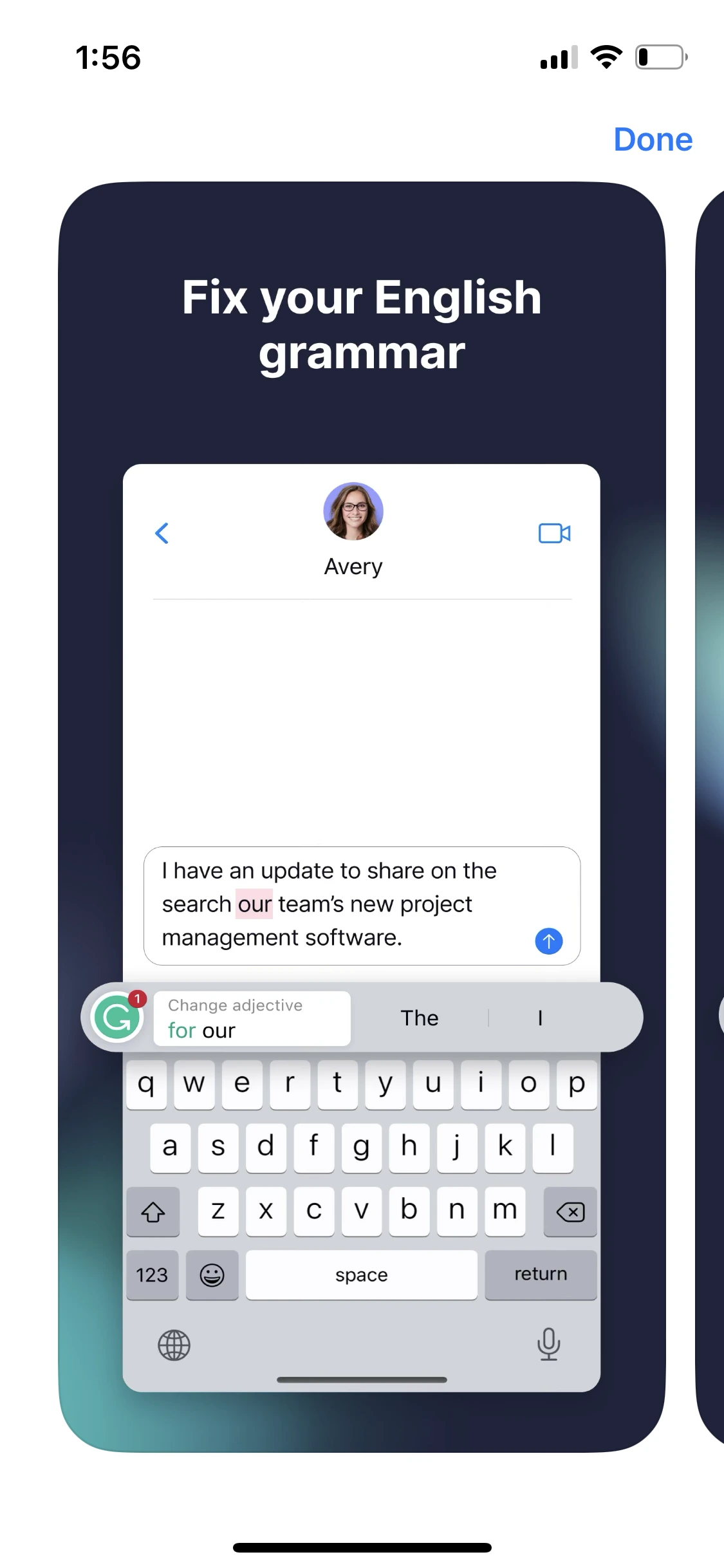 아마도 많은 사람들이 키보드 튜닝 앱을 사용해 본 경험이 있을 것 같다. 이게 뭐냐 하면, 앱 설치 시 추가 키보드를 제공해 주는 것이다. Grammarly를 설치하면 언어 버튼에 키보드 하나가 더 생긴다. 해당 키보드로 텍스트를 작성하면 문법 체크가 실시간으로 이루어진다.