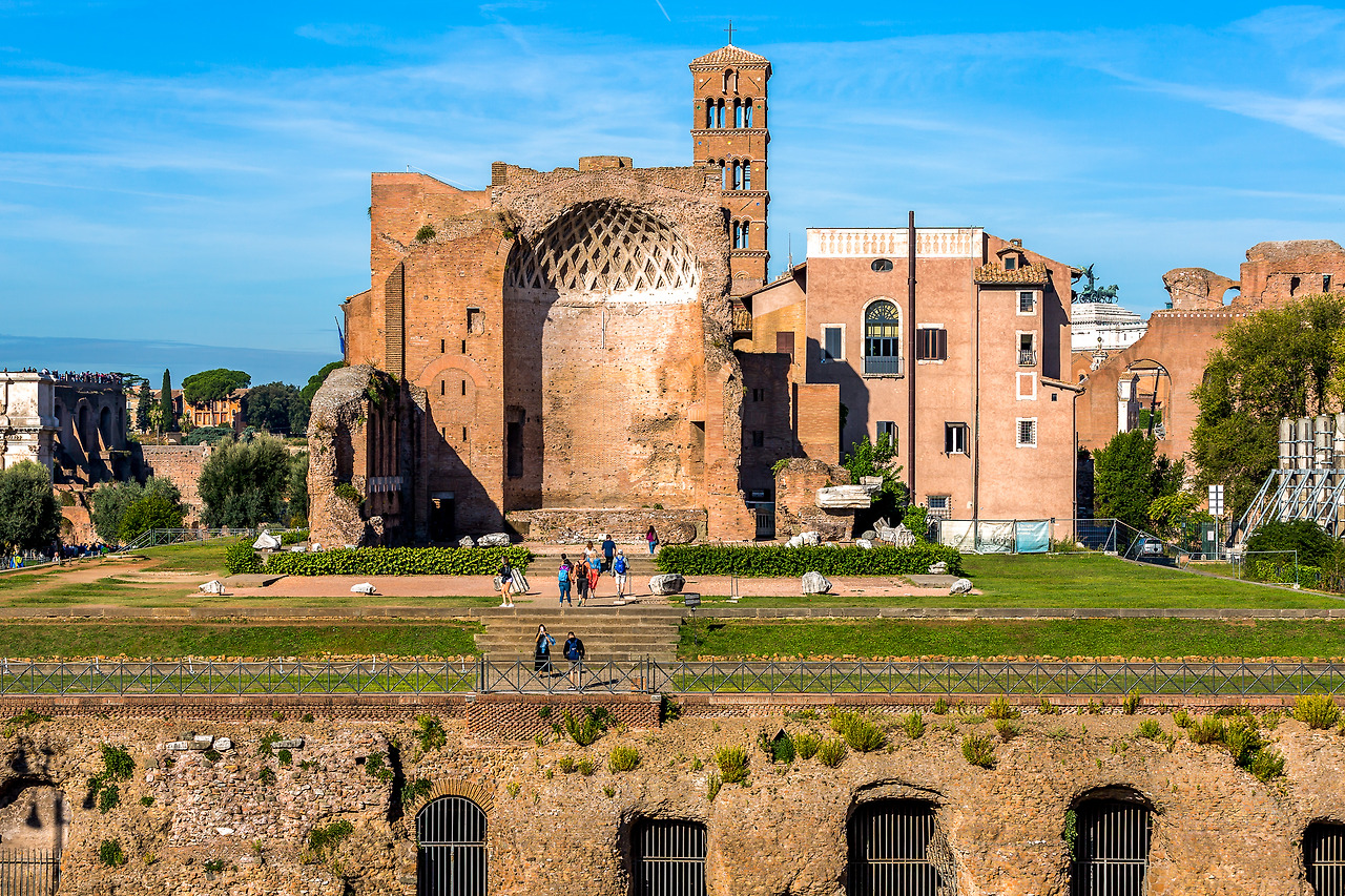 콜로세움에서 포로 로마노 방향으로 보이는 비너스와 로마 신전. 로물루스의 건국 이야기를 신화로 만들자니 비너스 출동하고 로마 에테르나까지 거든다.