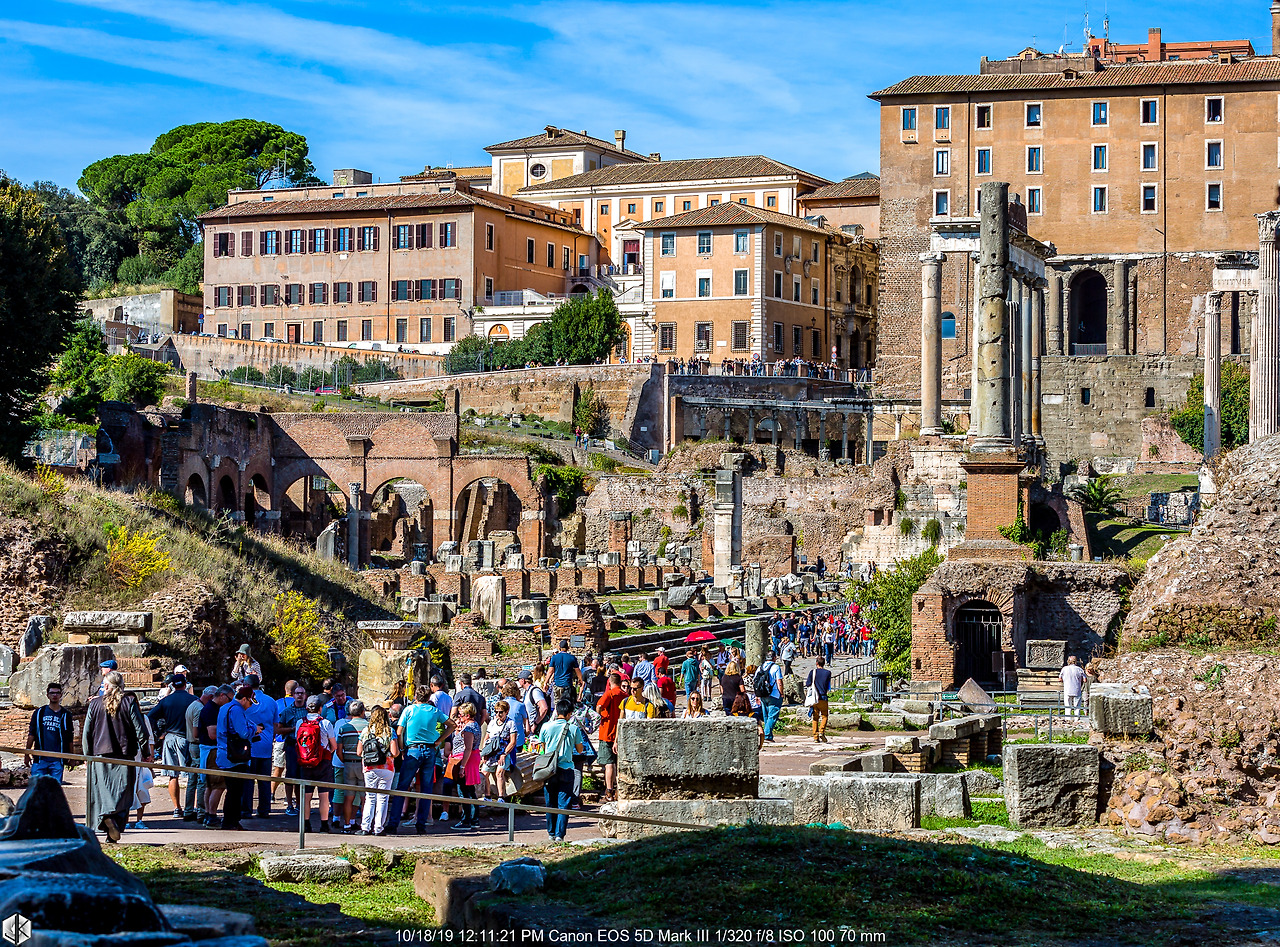 셉티미우스 세베루스 황제가 서기 203년 파르티아(이란)와의 전쟁에서 승리한 것을 기념하기 위해서 세워졌다. 가운데 아치문이 하나 있고 양 옆으로 보조 아치문이 2개 있어 근대 개선문 양식의 기본이 된다. 그림을 보니 포로 로마노 발굴 이전에는 이렇게 절반이 땅속에 묻혀 있고 양쪽의 보조 아치도 막혀있다. 역시 눈에 보이는 것이 전부가 아니다.