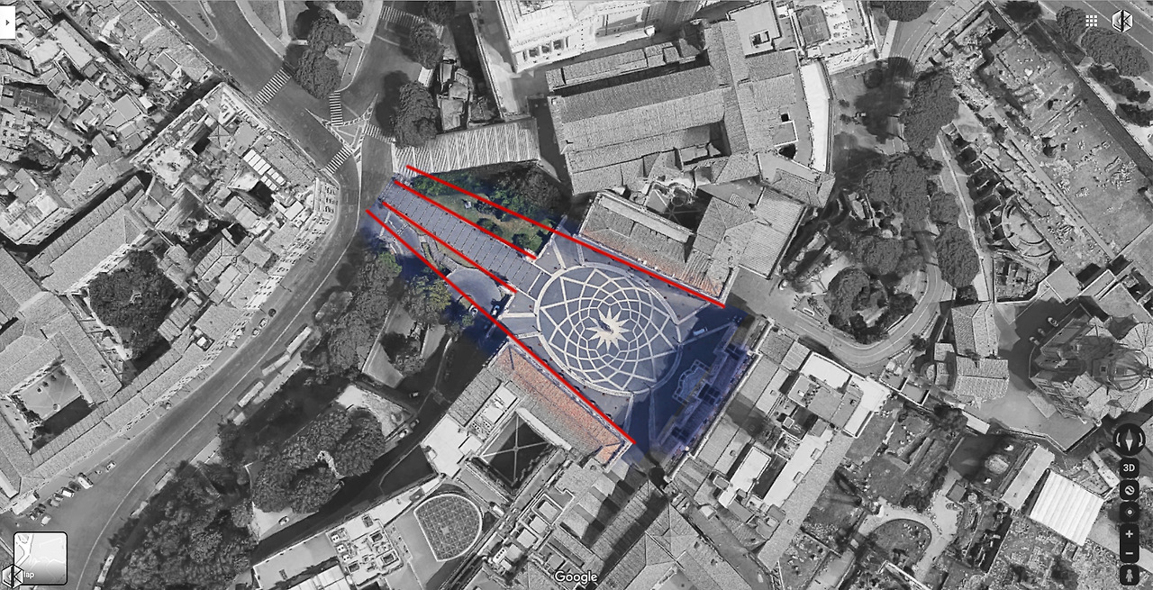 르네상스의 천재 미켈란젤로는 원근법의 적용을 건축의 영역까지 확대하여 계단과 광장의 설계에 적용한다. 아래 계단 입구에서 보면 신전쪽으로 갈수록 약간 크게 만들어서 앞으로 다가와 보이기에 신전을 찾아오는 이들로 하여금 신전이 더 가깝게 느껴지게 하는 효과. 안에 있는 작은 별도 포인트가 12개이고 바깥쪽의 큰 별도 포인트가 12개다. 그걸 또 세고 있다. ^^