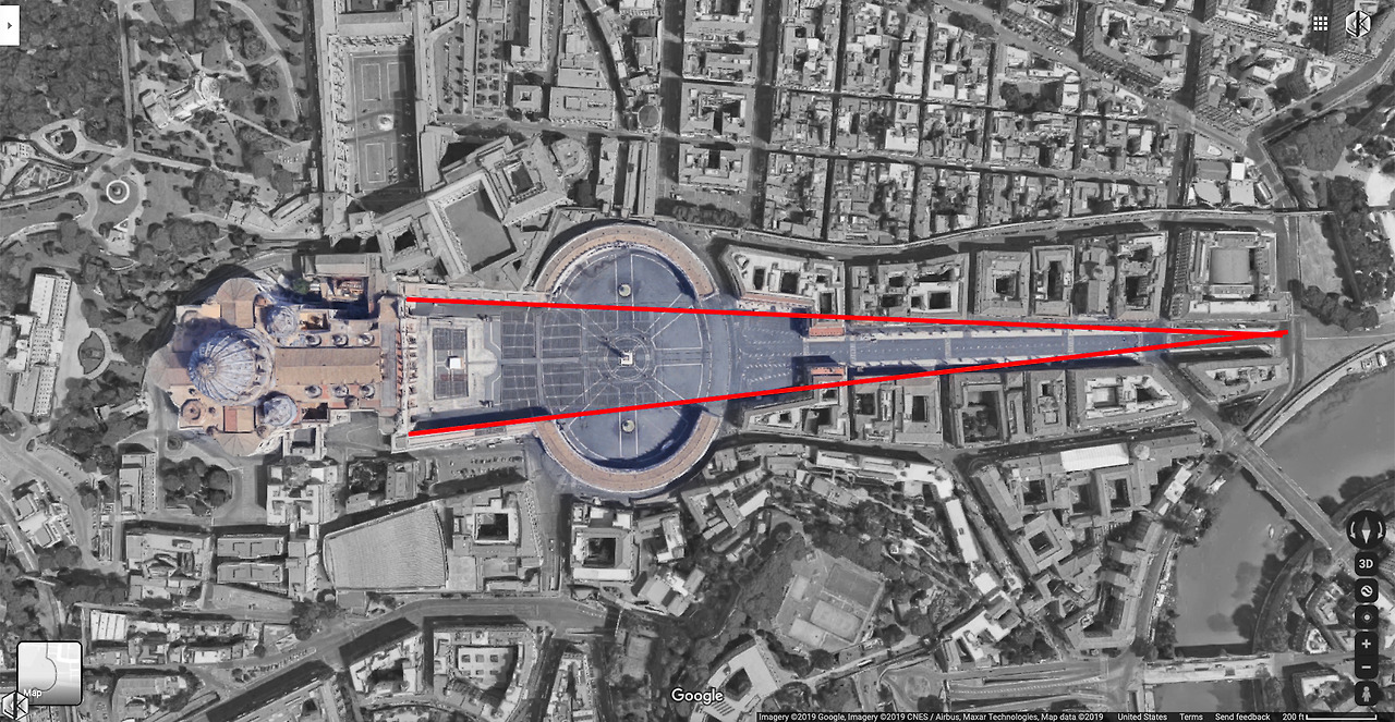 원근법 디자인은 후일 베르니니에 의해 성 베드로 성당 광장에 적용된다.