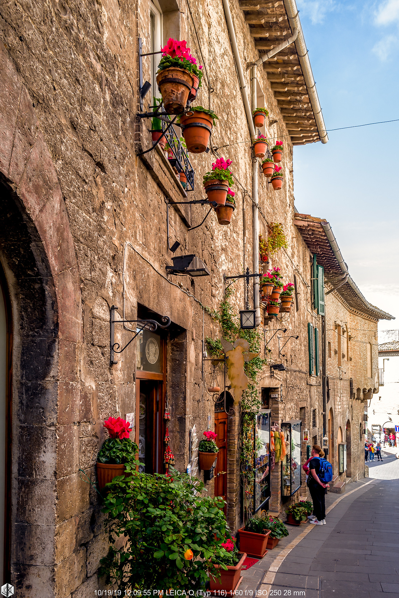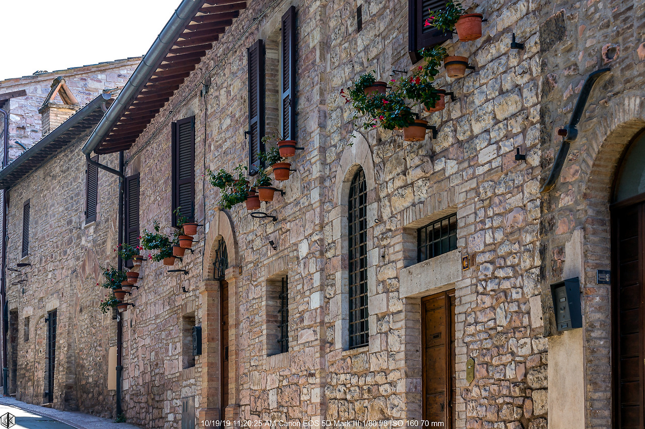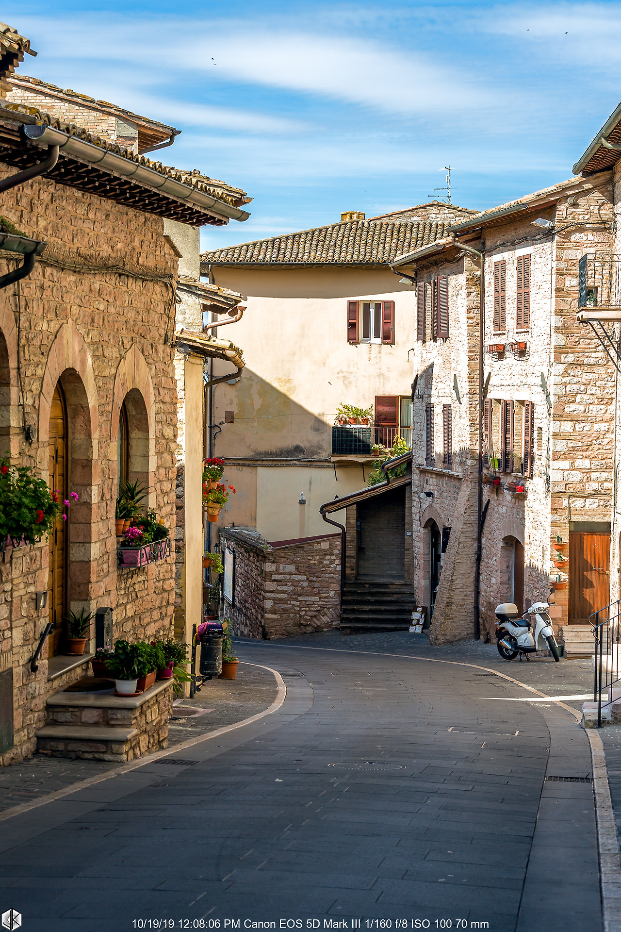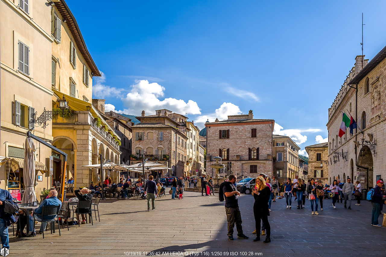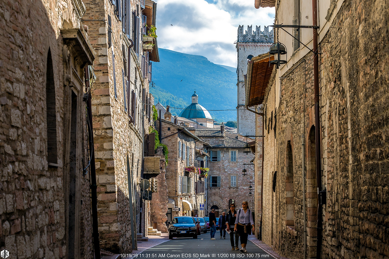 오른편 위로는 미네르바 신전 건물이 보이고 정면엔 성 프란체스코가 설교를 하여 많은 사람들에게 감명을 주었던 산 루피노 성당이 보인다. 관광객들도 성지 순례하듯 조용조용 마을을 돌아본다.