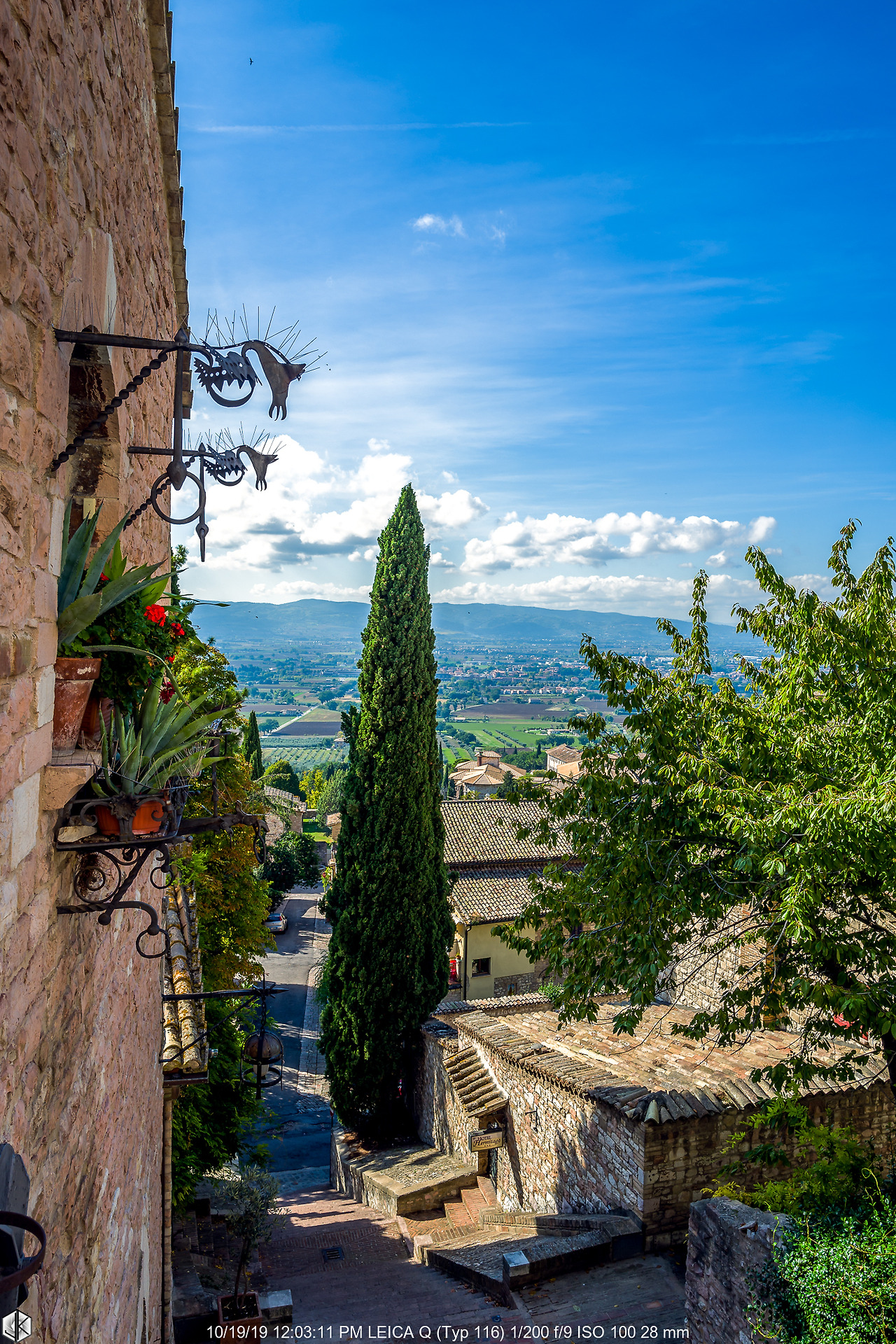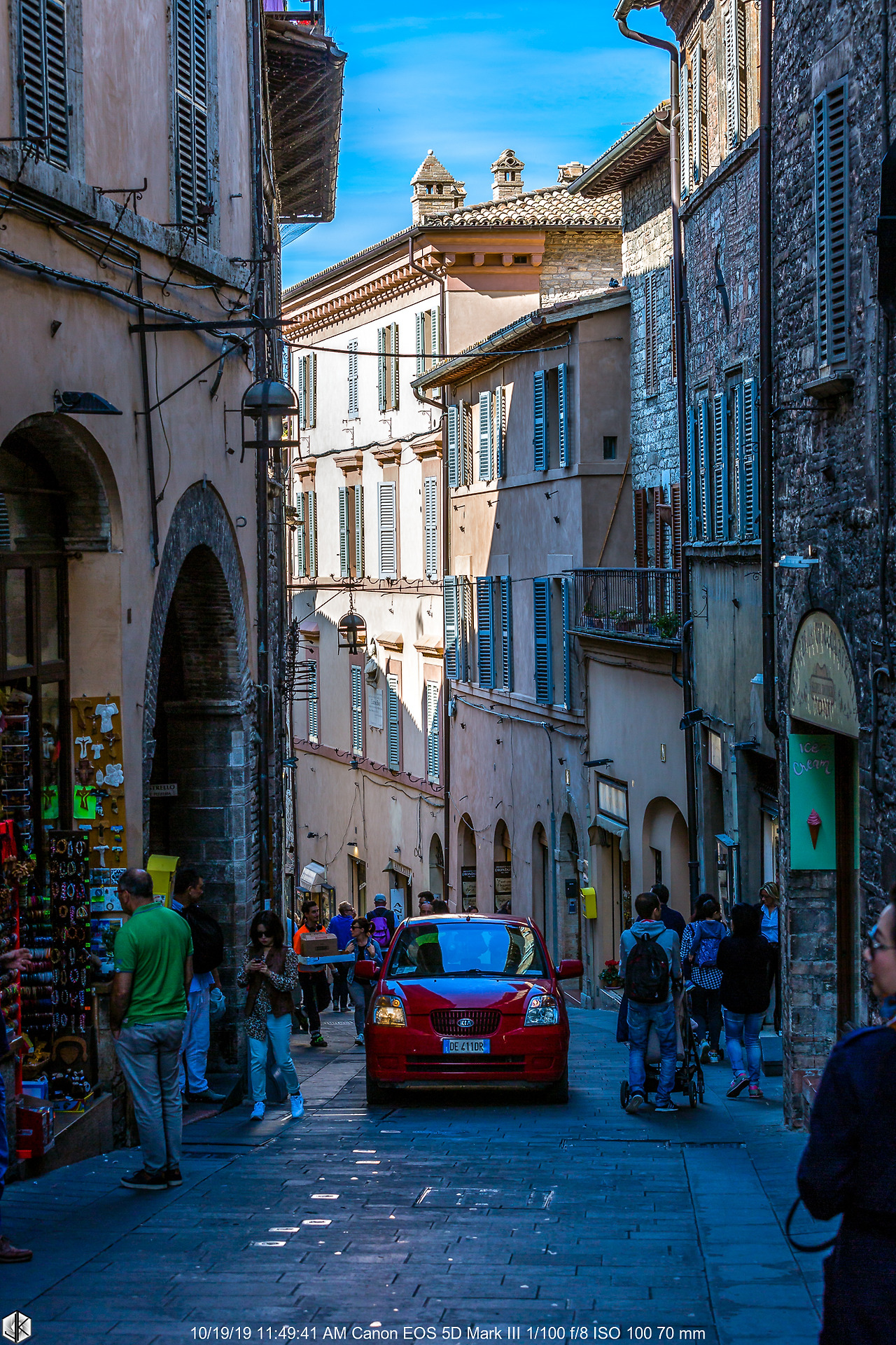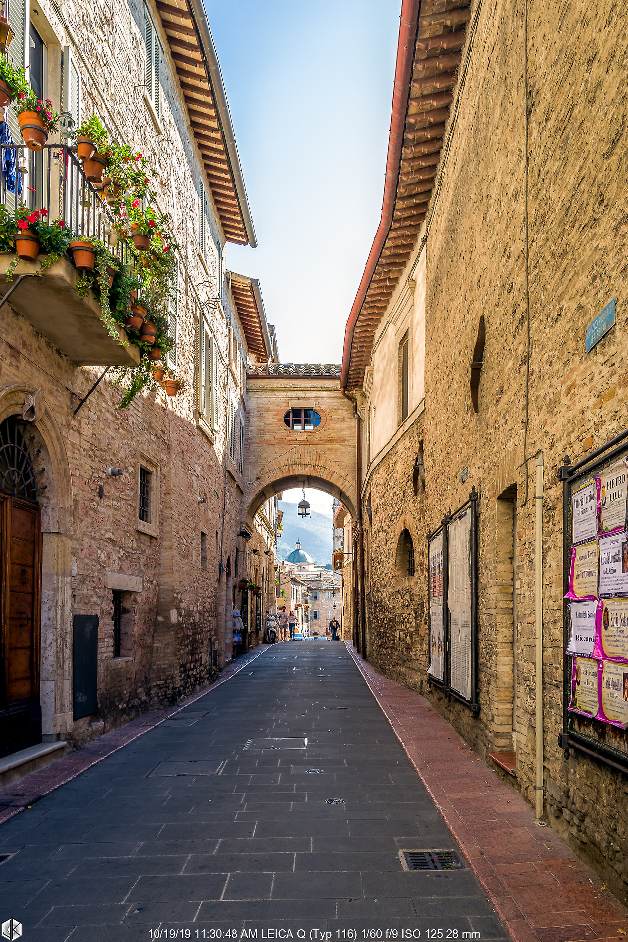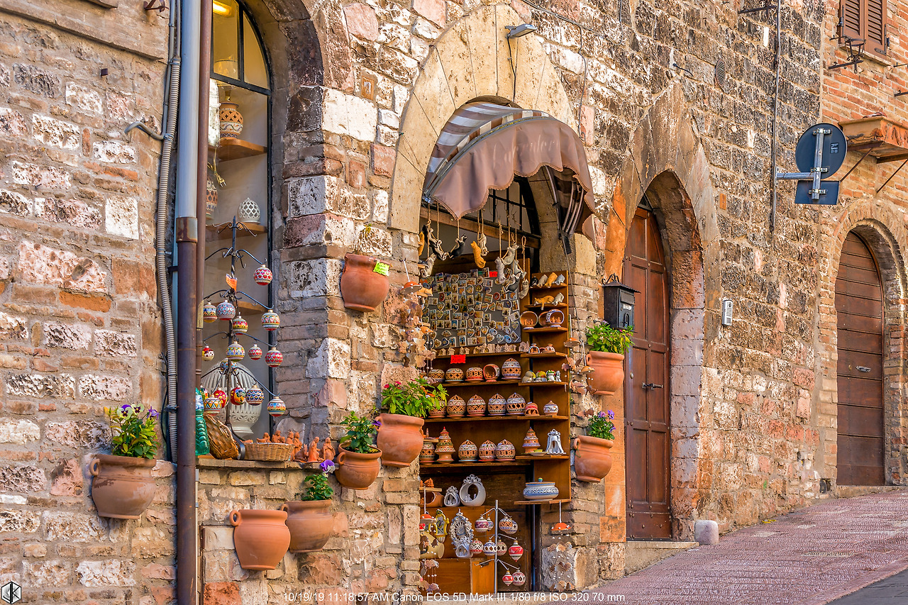오른편 위로는 미네르바 신전 건물이 보이고 정면엔 성 프란체스코가 설교를 하여 많은 사람들에게 감명을 주었던 산 루피노 성당이 보인다. 관광객들도 성지 순례하듯 조용조용 마을을 돌아본다.