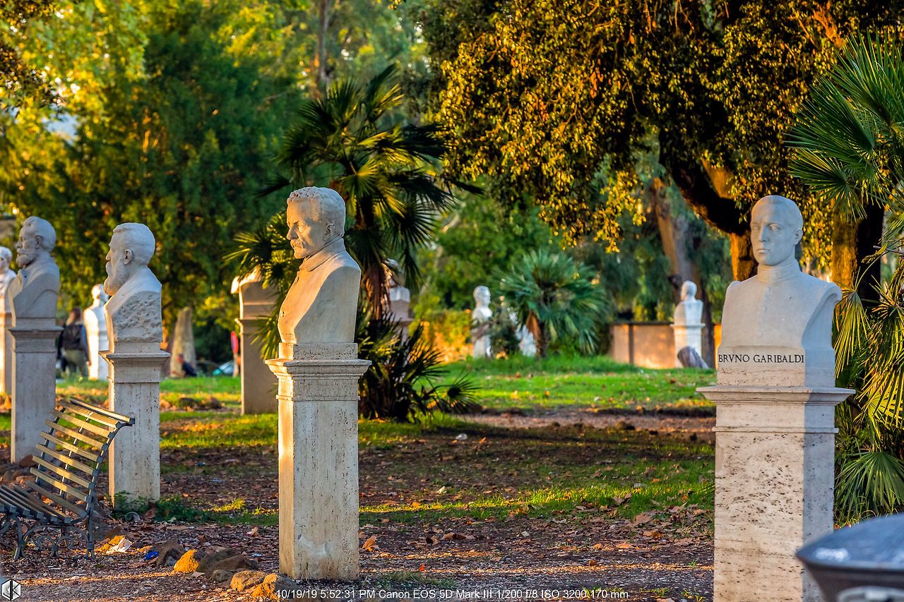 가리발디 장군이 바라보고 있던 곳은 가족과 동지들이 모여 있는 바로 여기. 가장 가까이 있는 흉상은 가리발디의 손자 브루노 가리발디. 함께 싸우다 사망한 첫 번째 부인 아니타를 포함하여 통일 전쟁을 함께 치른 전우들이 모두 이곳에 있다.