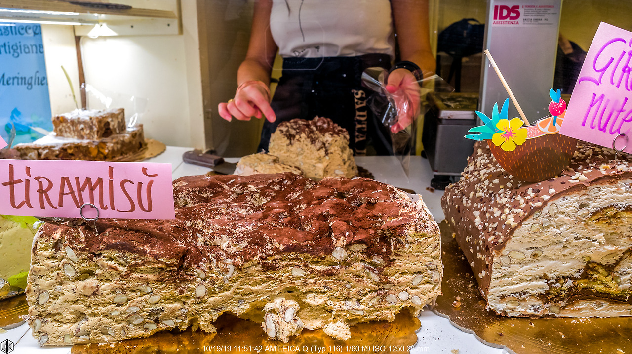 길을 따라 내려오다 보니 토로네(Torrone) 가게가 보인다. 젤라토와 함께 이탈리아에서 꼭 오리지널 레시피로 먹어봐야 하는 아이템 중의 하나. 너트와 누가(Nougat)로 만든 이탈리안 토로네. 티라미수(Tiramisu)는 Tirare(들어 올리다) + mi(나를) + su(위로)의 합성어로 나를 들어 올린다는 의미로 먹으면 기분이 좋아진다고 한다. 달달함과 동시에 입안을 가득 채워주는 마스카포네 치즈향이 에스프레소와 함께하니 천상의 궁합. 그런 티라미수가 토로네의 너트와 누가를 만났으니 극한의 풍미.