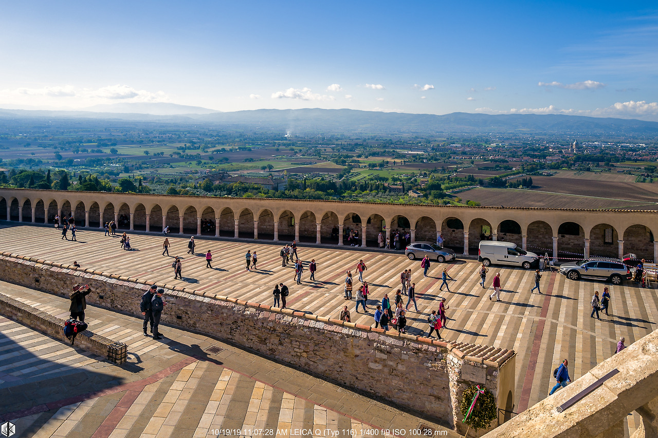 길게 이어진 아치형 회랑 너머로 움브리아 평원이 시원하게 펼쳐진다. 양지바른 곳인 데다가 기운까지 넘치니 힐링에는 이보다 더 좋을 수는 없다.