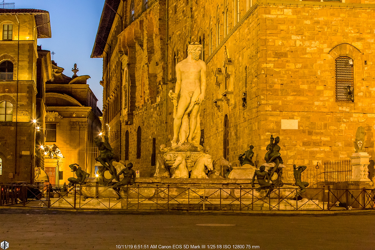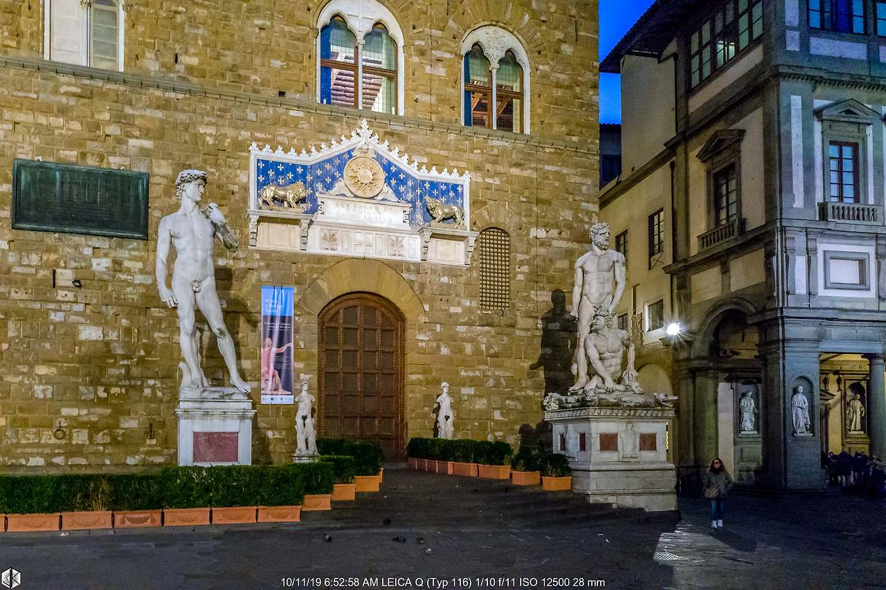 가는 길목에 있어 들린 시뇨리아 광장. 평소엔 붐비는 인파로 인해 제대로 감상을 하기도 어렵지만 지금 이 시간은 여유롭다. 베키오 궁전 입구에 있는 미켈란젤로의 다비드와 반디넬리의 헤라클레스와 카쿠스 조각상.