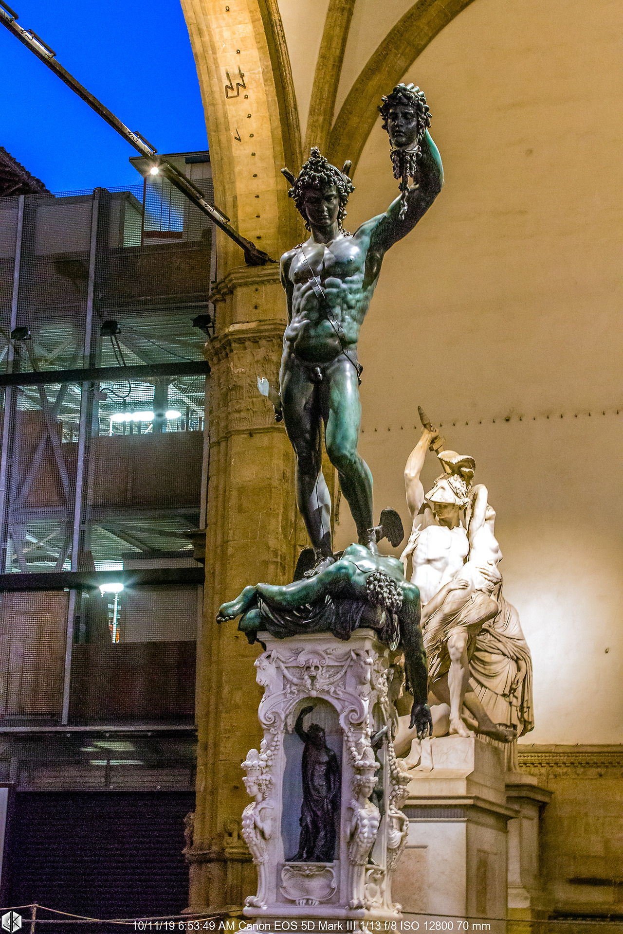 1554년 벤베누토 첼리니의 메두사의 머리를 벤 페르세우스라는 작품인데 공화정을 무너뜨리고 정권을 탈환한 메디치가에서 자신들의 승리를 찬양하는 작품을 발주한 것. 메두사의 머리는 공화정의 상징이라나 뭐라나. 암튼 무시무시하다.