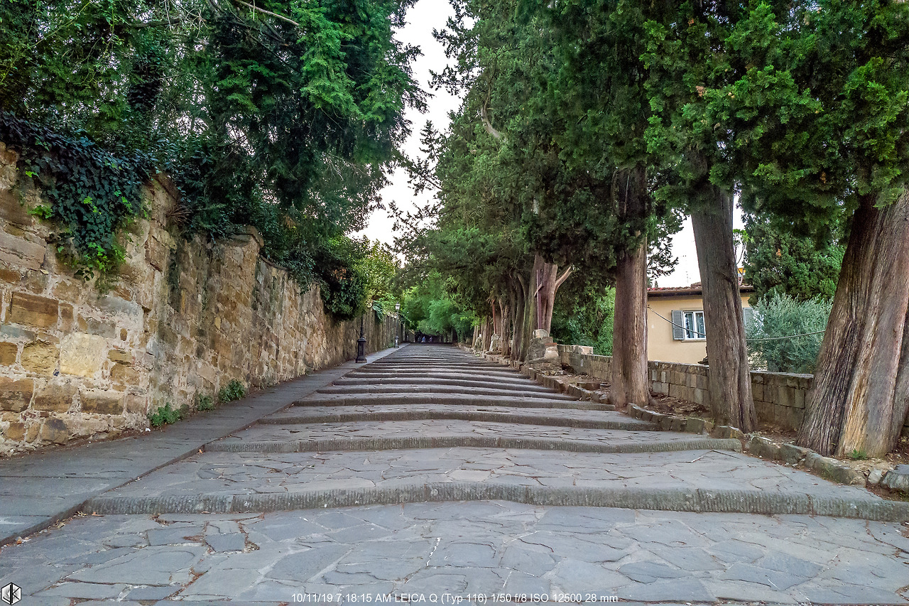 시뇨리아 광장에서 강변으로 곧장 내려와 다리를 건너 미켈란젤로 광장까지는 걸어서 30분. 1865년부터 1870년까지 5년간 피렌체가 이탈리아의 수도가 된 적이 있는데 이때 시작된 피렌체 도시 개발 사업으로 조성된 룽가르노 (Lungarno, 강변길)가 바로 이곳. 왼쪽으로 보이는 나무숲도 그때 조성되었다.