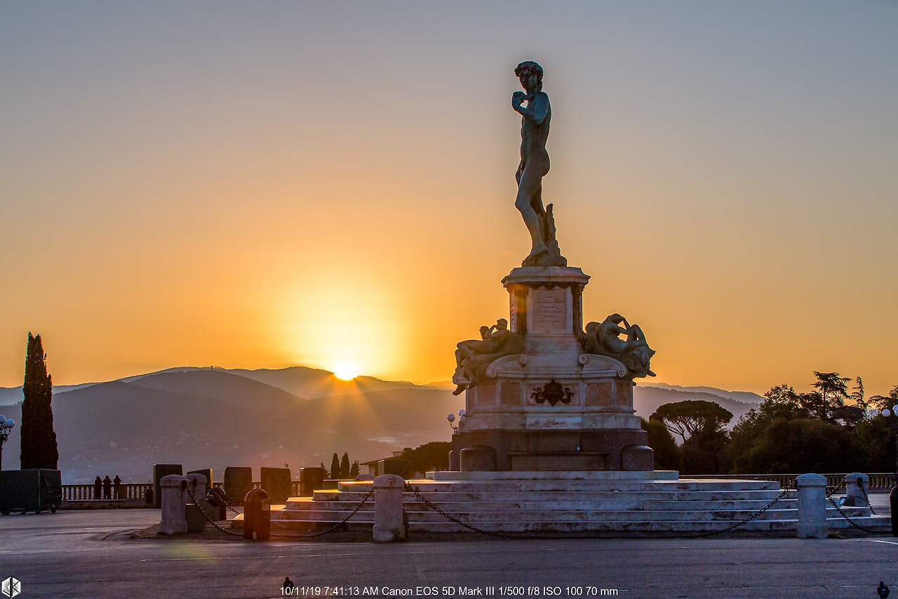 새벽 4시 시차의 짤 없음을 몸으로 느끼며 눈을 뜬다. 잠시 뒤척이다 이내 받아들이고 챙겨주는 아침 먹고 (그 시간에 아침 식사를 제공하는 식당이 없기도 하거니와 아침 챙기고 준비해서 함께 길을 나서 준 애들 엄마 덕분에 새벽 사진을 담는다.) 일교차가 심한 새벽이라 따뜻한 옷도 챙겨야 한다. 미켈란젤로 광장에서의 일출을 맞으러 출발.