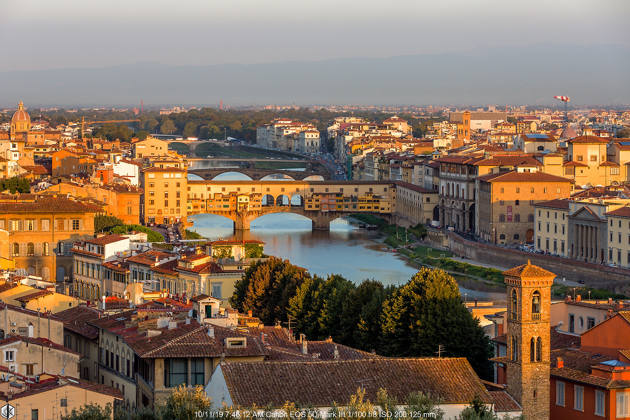 아침 먼동에 햇살 받은 폰테 베키오 다리.