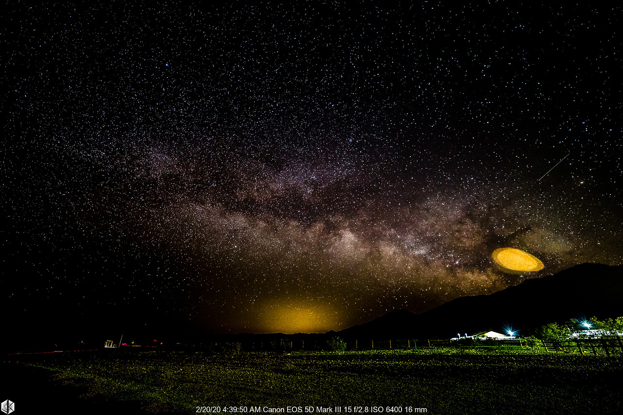 마지막 날 새벽 캠핑카 문을 열고 나오니 은하수가 기다리고 있다. 달 뜨기 10분 전 가까스로 담을 수 있었다. 산 위로 걸쳐있는 은하수 중심과 블랙홀 부분에 빛이 들어가서 아쉬운 마음이 드는 걸 보니 다음엔 좀 더 어두운 곳에서 캠핑카를 세워놓고 있지 싶다.