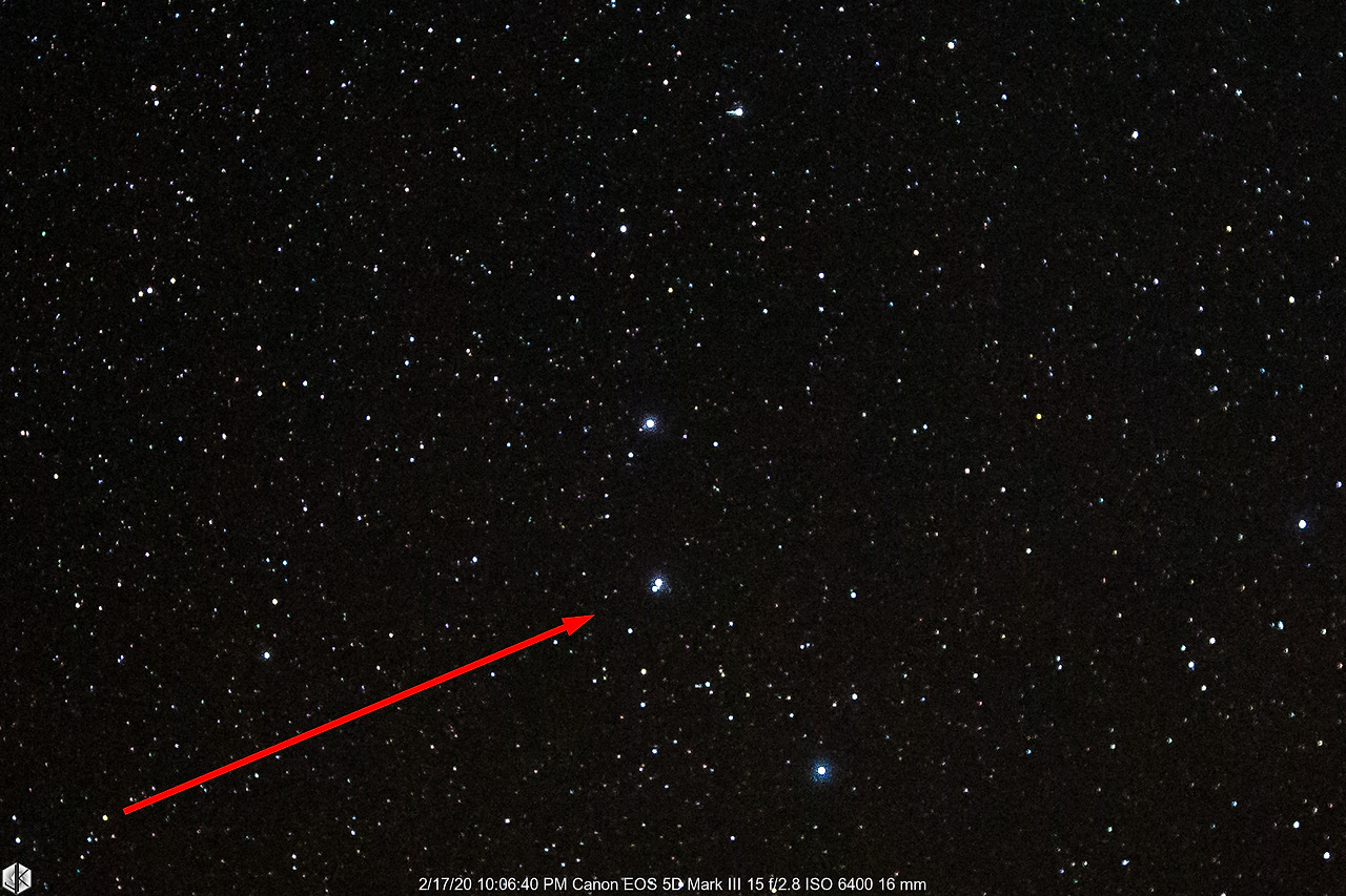 빨간 화살표가 가리키는 별이 북두칠성 손잡이 두 번째 별인 미자르. 그런데 알고 보면 이 위치에 별이 2개가 있다. 지구에서 보면 같은 선상에 있어 하나로 보이지만 사실은 그 뒤에 알코르라는 항성이 위치하고 있다. 이쯤 되면 확인 들어가야 한다.