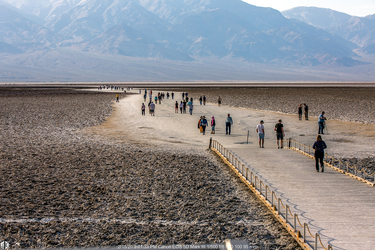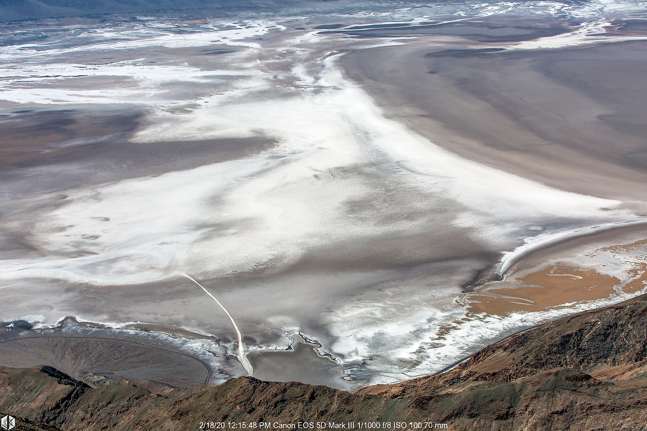들어갈 때보다 되돌아 나올 때 보여주는 풍광이 장관이다. 오전에 들렀던 단테스 뷰 전망대가 저 멀리 보이고 바닥에서는 눈길 같은 뽀드득거림이 느껴진다.