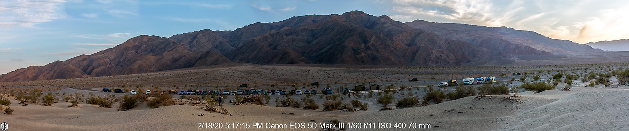 메스퀴트 모래 언덕에서 고개를 돌리면 투키산이 시선을 사로잡는다. 파노라마 사진 1장 만드는데 사진 5장을 합쳐야 했다.