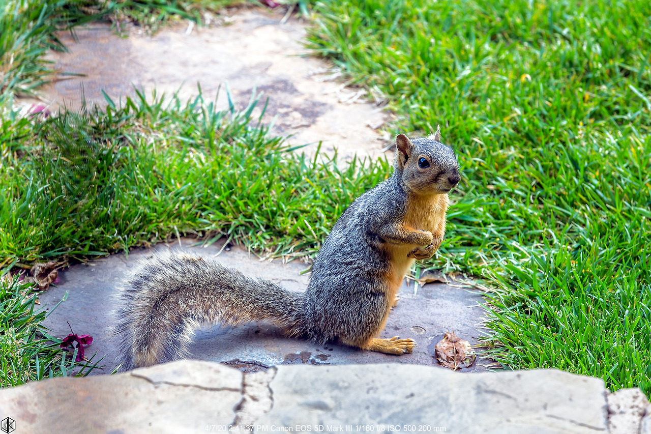 집 앞에 심어놓은 오렌지 나무에서 열심히 챙겨 먹던 다람쥐가 하도 사람들이 없으니 궁금해서 문 앞까지 확인하러 왔다. 사람이 나가지 않으니 동물들이 찾아온다. 미국 어느 시골 마을에는 곰도 궁금하여 찾아온다고 하는데 곰은 사양한다.