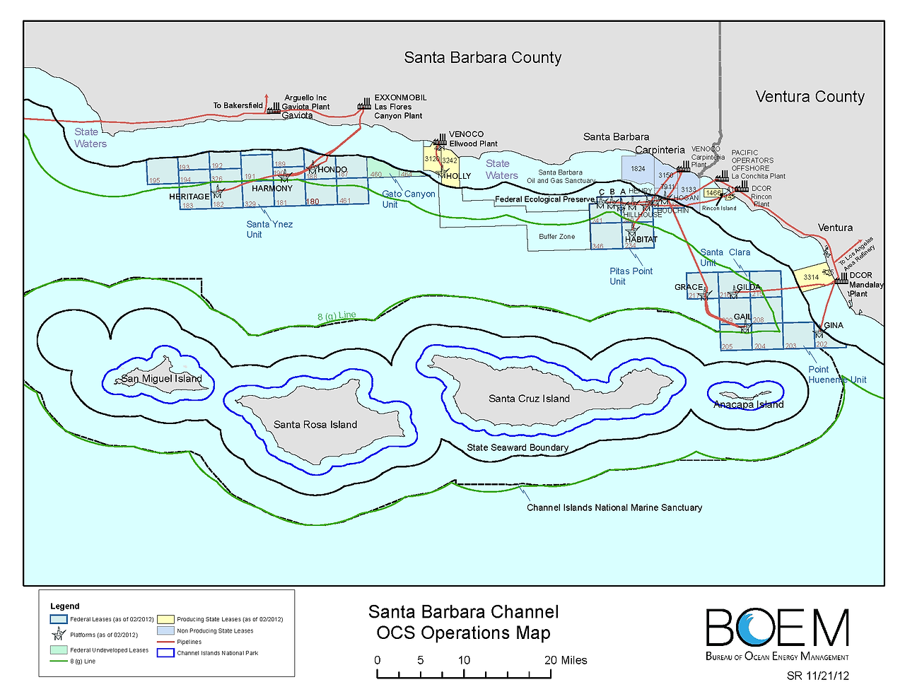해변에서 불과 3킬로 떨어진 곳에서 27대의 시추선이 줄지어 있는데 2017년 베노코 석유회사의 파산 이후 시추는 중단되었고 2021년까지 유정을 다 막고 철수할 예정이다.