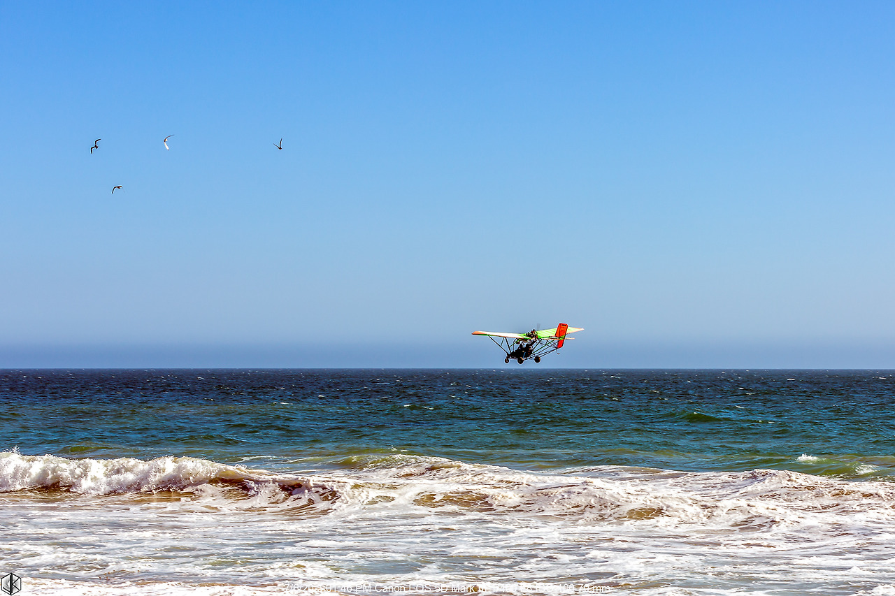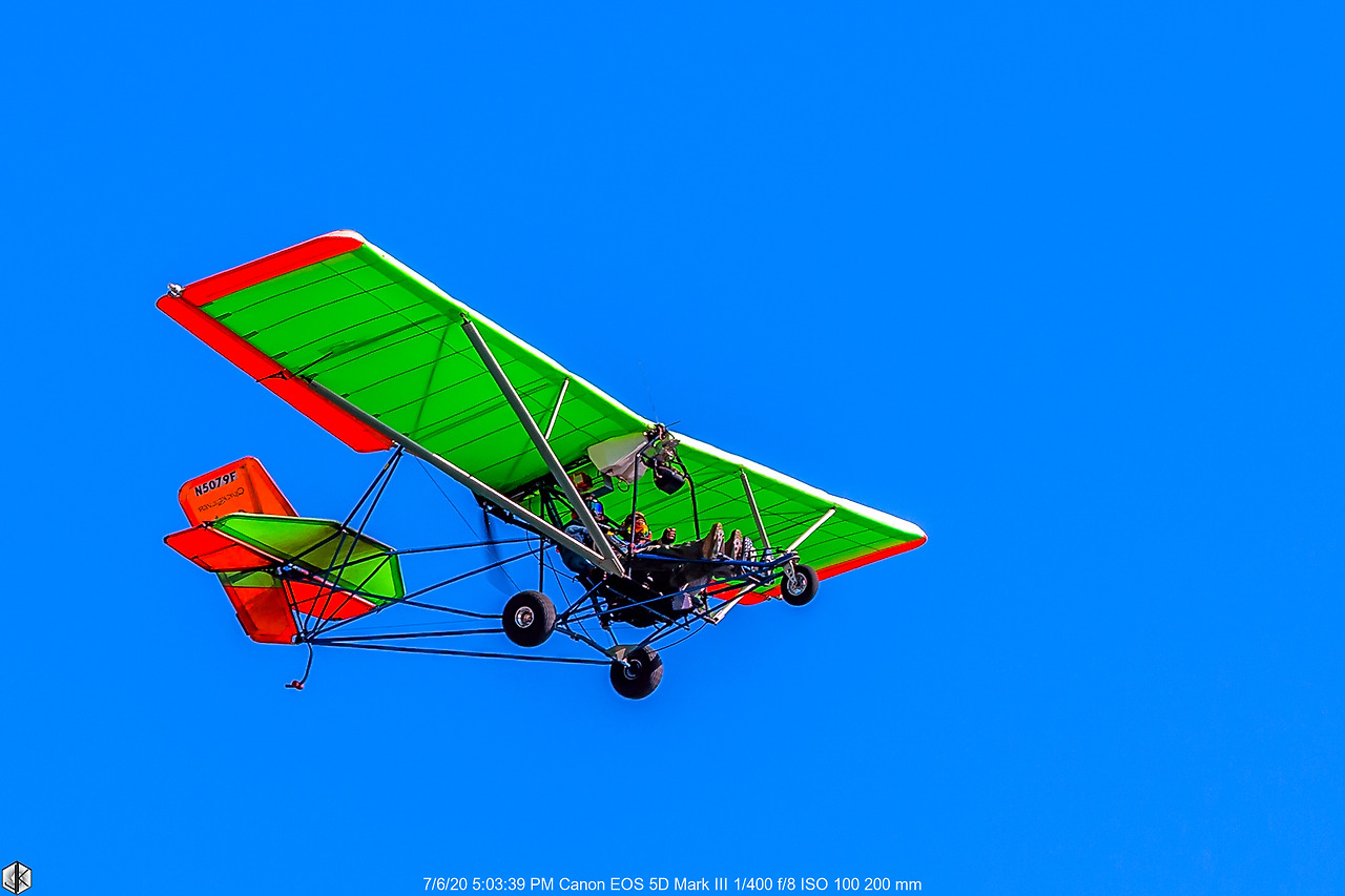 사진을 당겨보니 탑승자는 두 명. 그야말로 운명공동체. 비행기를 돌려서 오는데 바람이 워낙 강해서 날아가질 못하고 잠시 정지화면처럼 공중에 서 있다. 셔터스피드 1/400초에 이 정도 선명한 사진이면 갈매기보다 느린 속도.