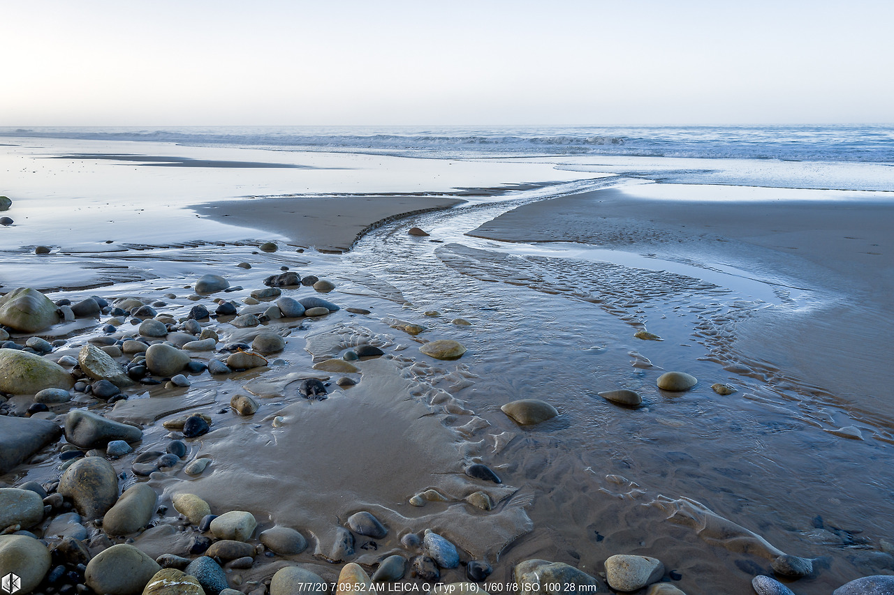 물이 들었다가 나가고 있는 타이밍이라 해변이 촉촉하다.