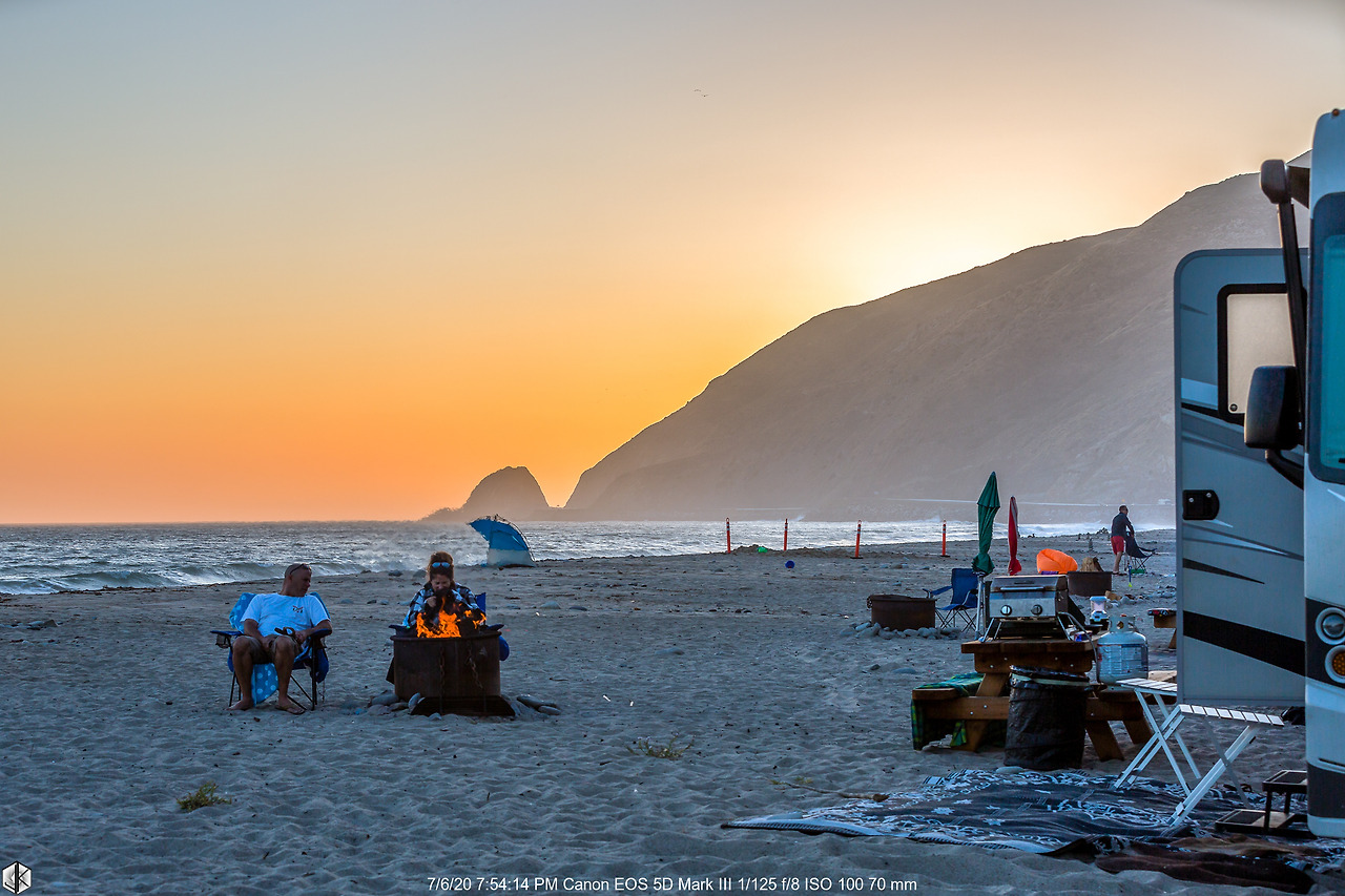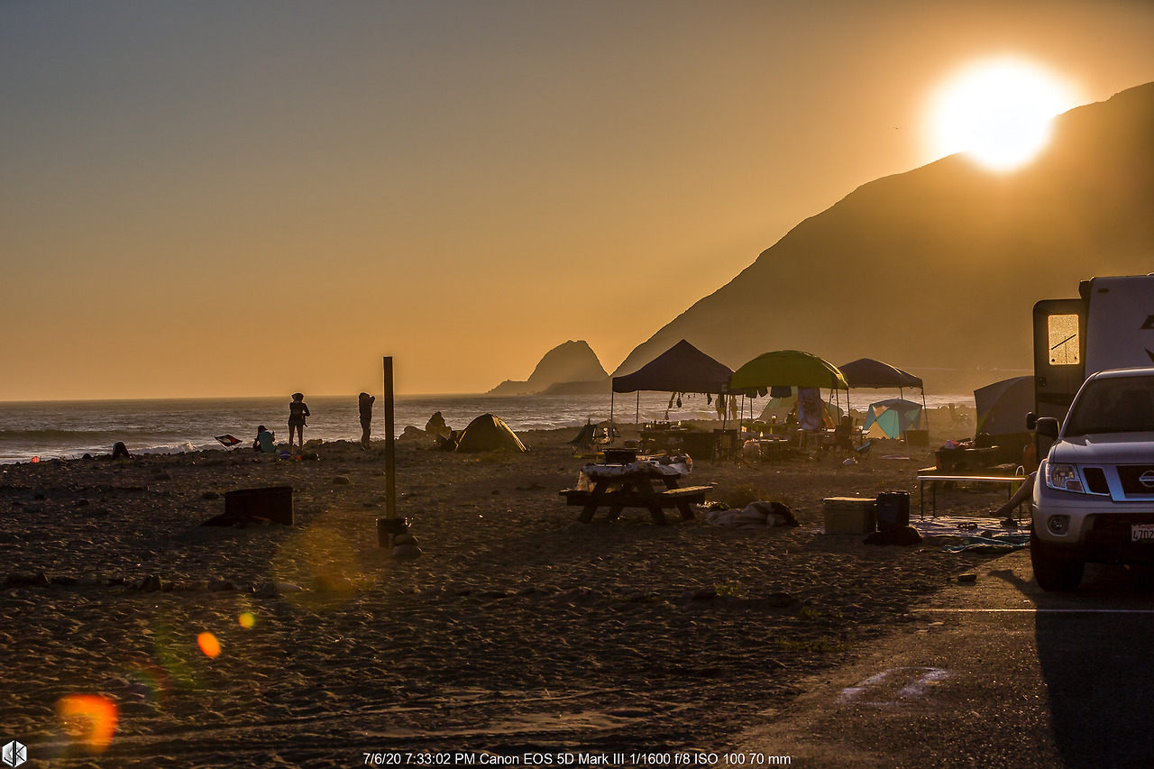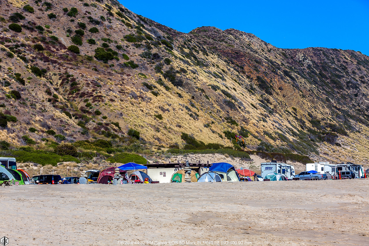 말리부 해안가를 오갈 때 언제나 시선을 끌던 캠핑장. 캘리포니아 해안가에 캠핑장이 몇 군데 있긴 하지만 매번 “빈방 없음”. 이곳은 평소 수평선에 해가 걸리는 석양을 볼 수 없어 가끔 온라인에서 “빈방 있음” 싸인을 볼 수 있는데 오늘이 딱 그날이다.