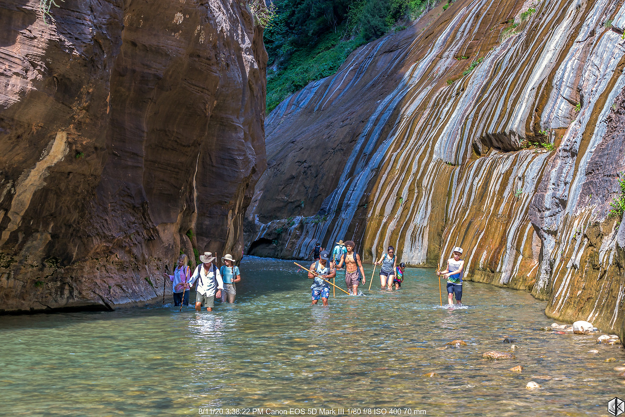 이곳부터 본격적인 계곡 물 걷기 시작이다. 밖은 섭씨 40도가 넘어가는데 물에 발을 담그니 온 몸에 차가운 기운이 감싼다. 그래서 한 여름이 아니면 내로우 물 걷기는 체험해볼 수 없는 일정.