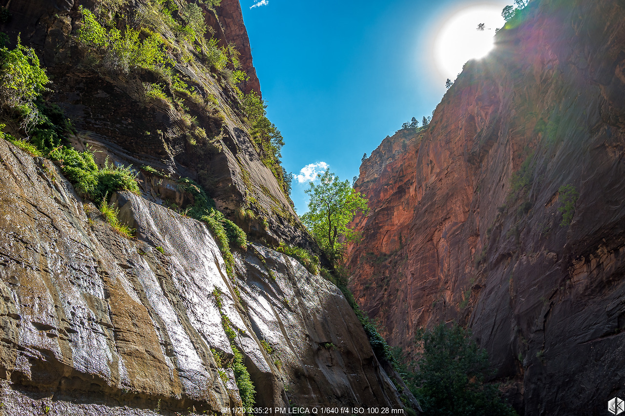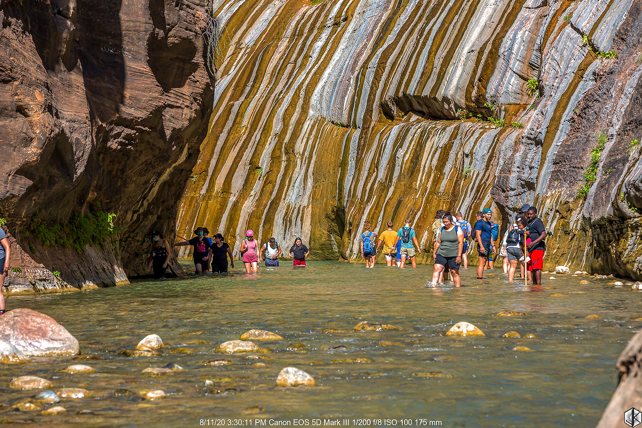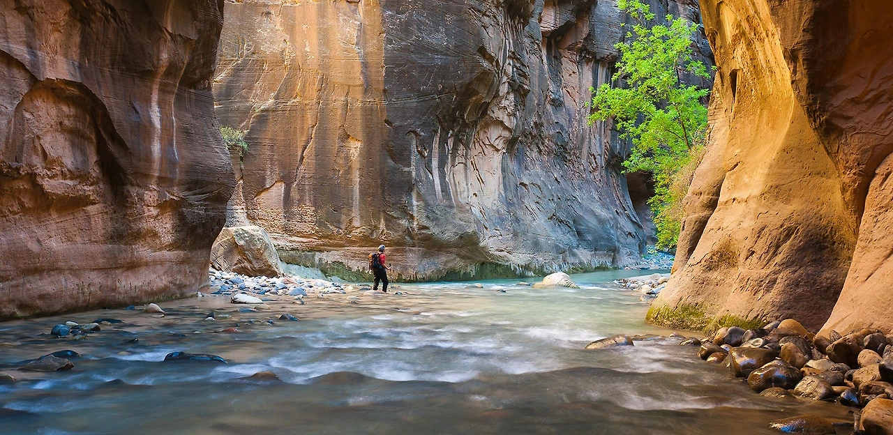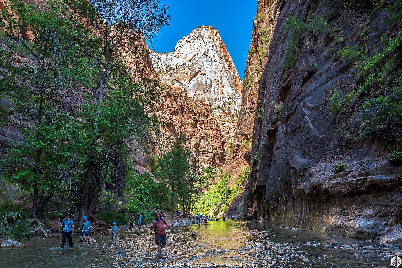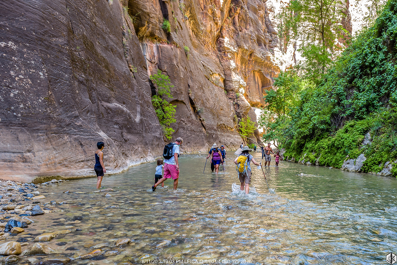오늘의 일정은 내로우(The Narrows). 자이언 캐년에서 계곡 사이 간격이 가장 좁은 곳이며 입구에서 안쪽으로 들어갈수록 점점 더 폭이 좁아지는 협곡이며 중간중간 물을 지나가야 해서 워터슈즈를 준비해서 올라가야 하는 곳이다.