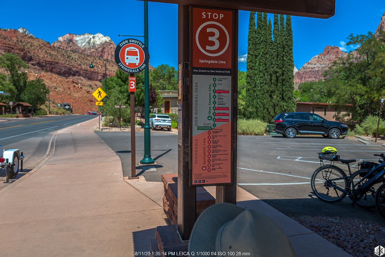 자이언 캐년 속으로 들어가려면 셔틀버스를 타야 한다. 주차장이 협소하여 무료 셔틀을 운영하고 있다. 스프링데일 시내 무료 셔틀버스를 타고 비지터센터로 이동. 무료 셔틀버스 운전하시는 분들께 1불이라도 팁을 드리면 여행 잘하라는 덕담을 아낌없이 들을 수 있다.