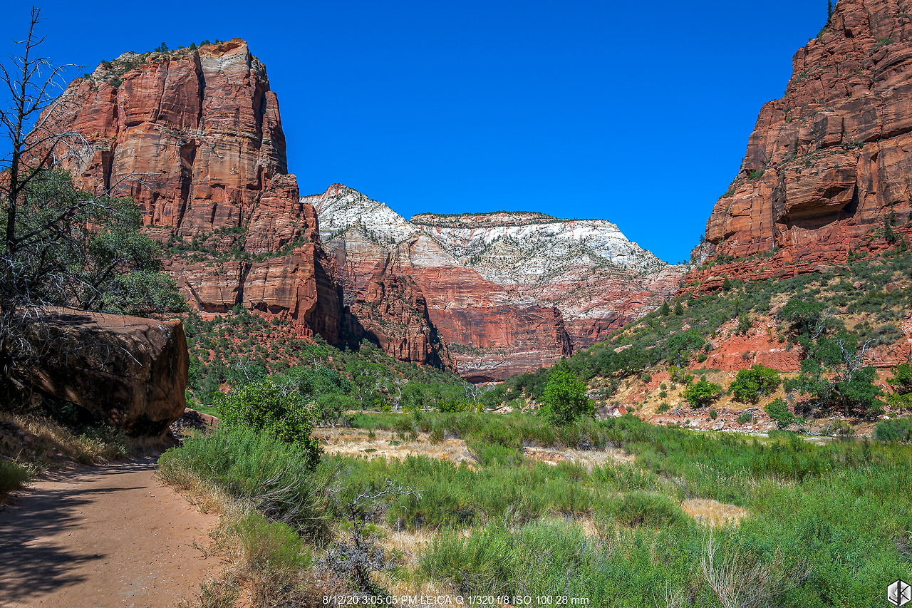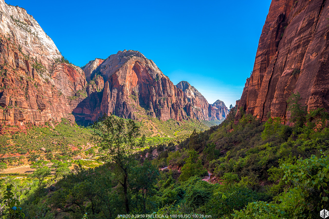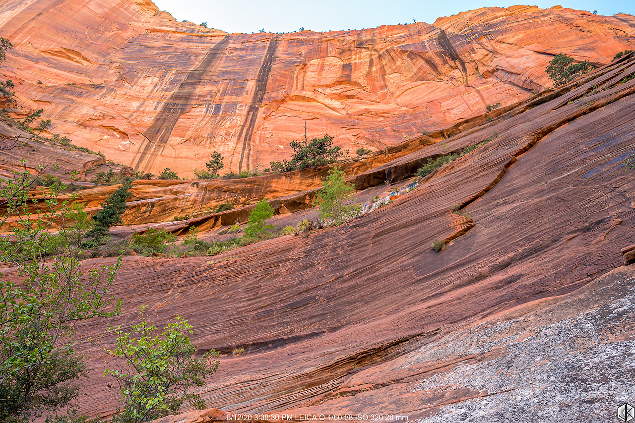 버스에서 내려 트레일에 들어서는 순간. 어라? 뭣이여? 엔젤스 랜딩 클라이맥스 체인 섹션이 출입금지. 한여름 기온이 너무 올라가니 체인이 너무 뜨거워져서 체인을 놓칠 경우 생길 사고를 방지하고자 한 것은 알겠다. 장갑을 챙기라고 하면 될 것을… 애석하지만 오늘은 체인 섹션 전까지만 인연이 닿았나 보다. 암튼 가는 데까지 올라가 보자.