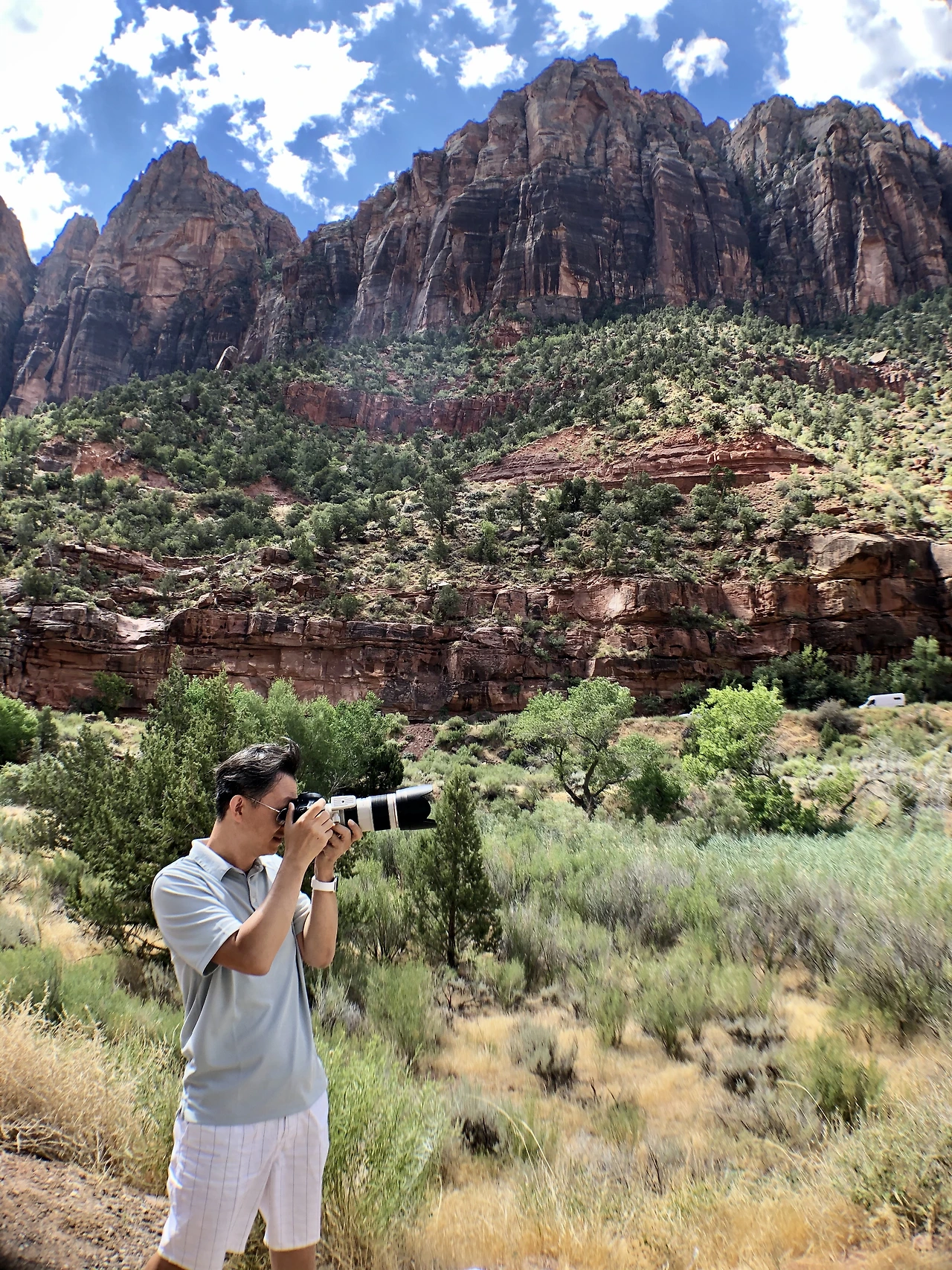 지온 캐년을 마지막 날 브리지 마운틴을 배경으로 열심히 웨스트 템플을 렌즈에 담고 있는 걸 애들 엄마가 한 장 챙겨준다. 고맙구로.