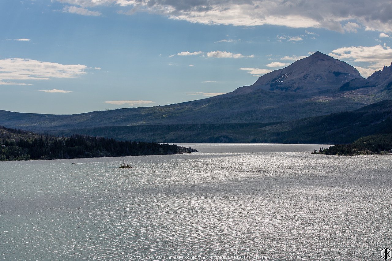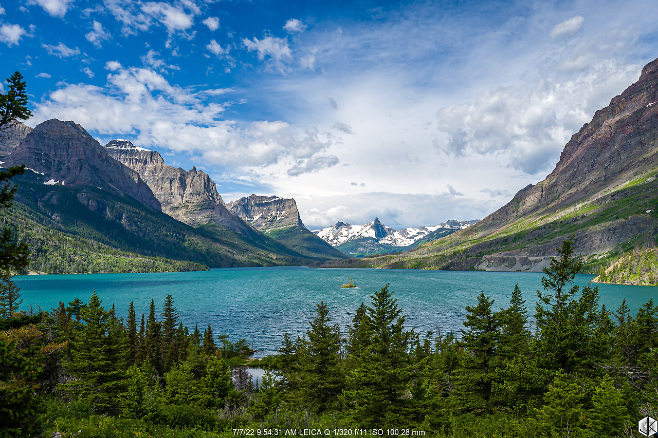 오늘의 메인 요리, 세인트 메리 호수. 구름이 레이어를 만들어 도와주는 날엔 사진 찍기 참 쉽다. 거기다 이곳엔 호수 한가운데 섬까지 있어 금상첨화.