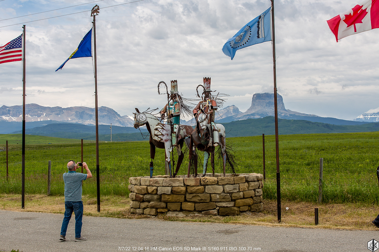 서부개척 시대 이곳에서 금광이 발견되어 골드러시가 있었고 이후 구리 광산도 발견되어 경제적으로 여유를 누린 몬타나. 하지만 이곳도 백인들이 오기 전엔 인디언들의 땅이었다. 미국에서 가장 큰 2번의 인디언 전쟁이 몬타나에서 치러졌고 그만큼 치열했던 때문인지 이곳에 그 당시 존재했던 2개의 인디언 그룹을 상징하듯 2명의 기마 인디언 조각을 세워 놓았다. 캐나다 국경 입구에 설치해놓은 것을 보면 아마도 오레곤에서 추방되어 몬태나를 지나 캐나다로 이주했던 추장 조지프가 인솔한 인디언 그룹이었지 싶다.