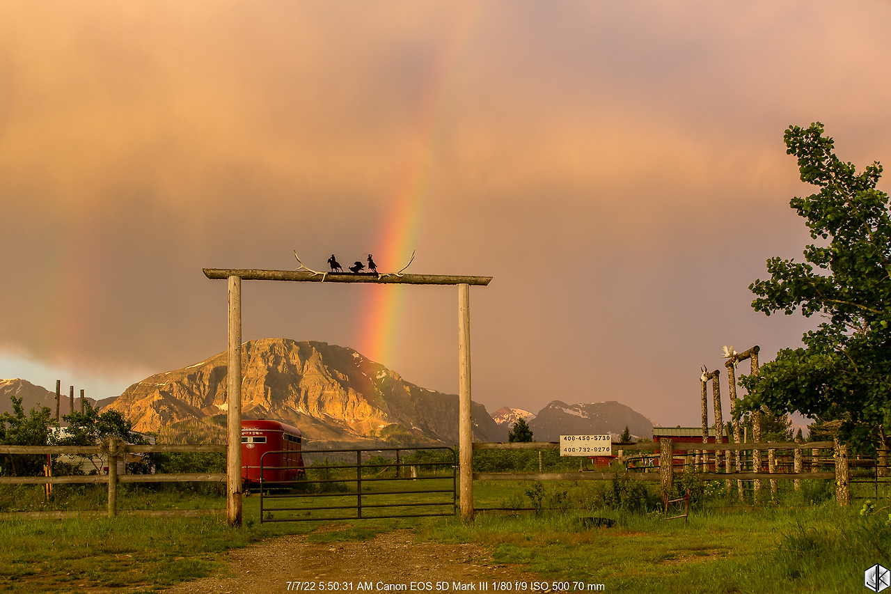 무지개 쇼 관람을 마치고 돌아보니 고삐 풀린 망아지가 풀을 뜯고 있다. 이곳 몬타나는 자연도 사람도 여유가 만만이다.