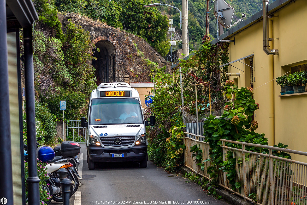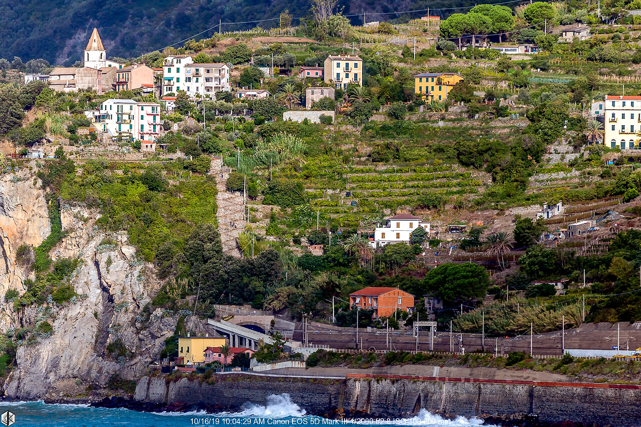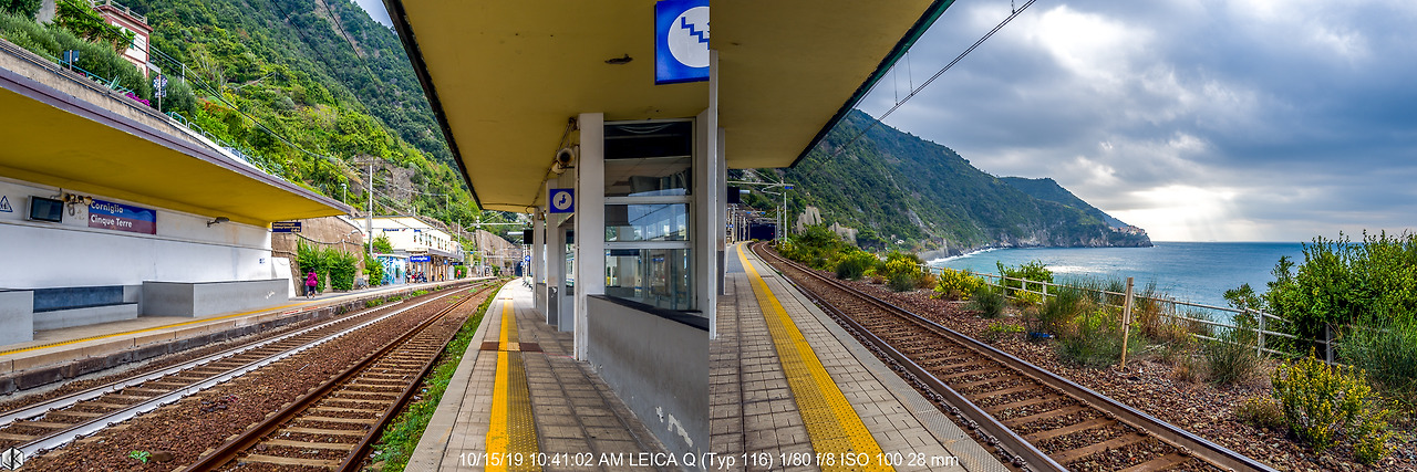 마나롤라에서 출발하여 우선 가깝고 5개 마을 중 규모가 가장 작은 코르닐리아로 이동한다. 사진 오른쪽으로 기차역이 길게 늘어서 있다.