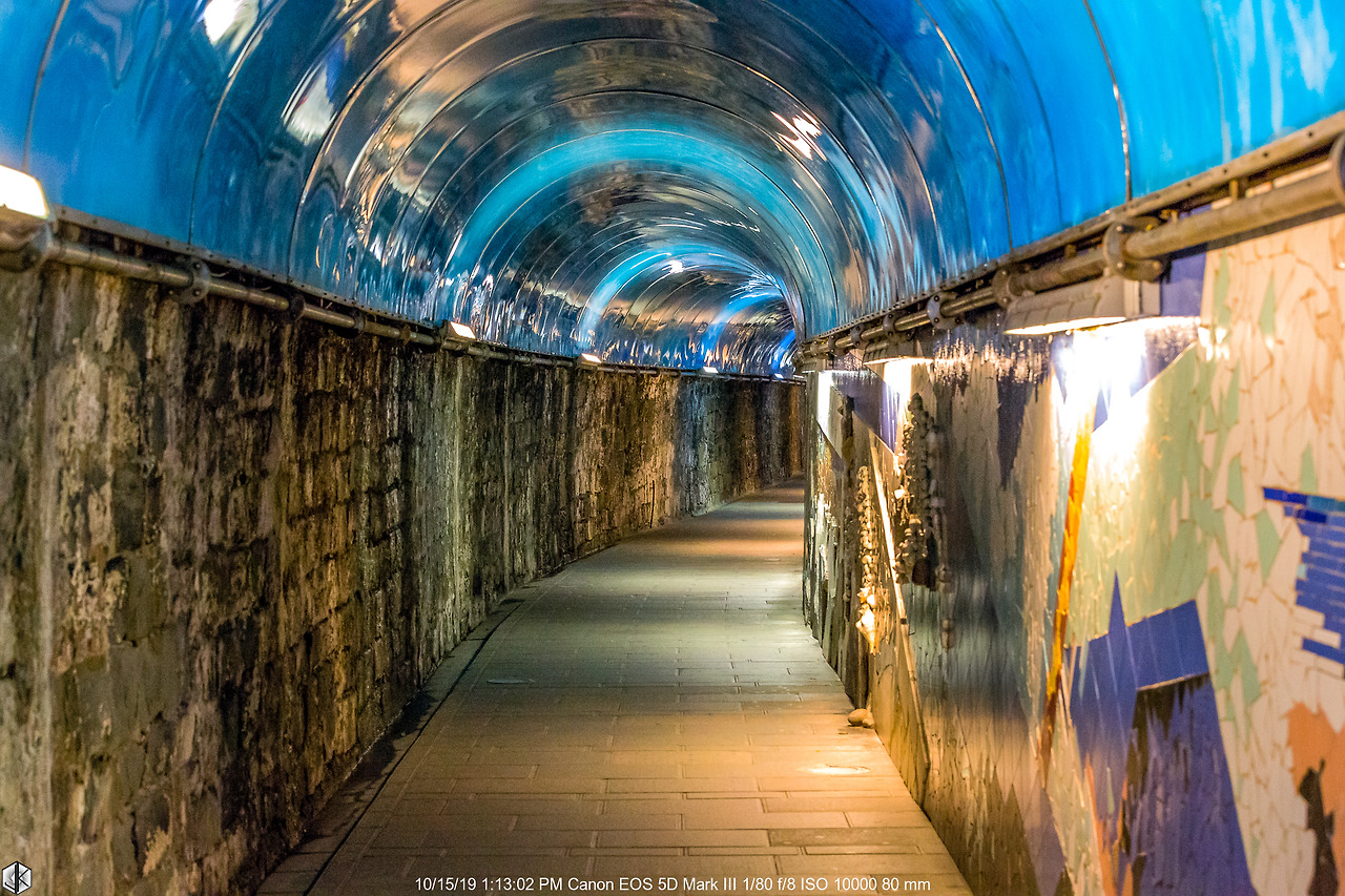 기차역에서 마을까지 터널을 통과해야 하는데 마치 터널을 지나면 왠지 바다가 나올 것 같은 해저터널 분위기를 연출해 놓았다.