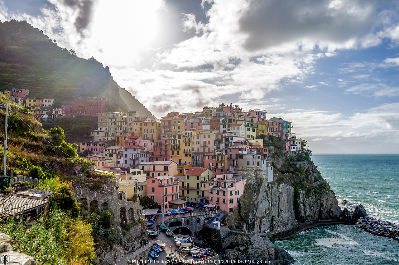 뒤돌아 남쪽으로 보이는 마나롤라. 거대한 자연 앞에 순응하며 살아가는 조그만 마을의 모습이다. 그래도 지중해는 형편이 많이 나은 편. 가끔 토네이도가 있다고는 하지만 대서양의 허리케인과 태평양의 태풍에 비할까.