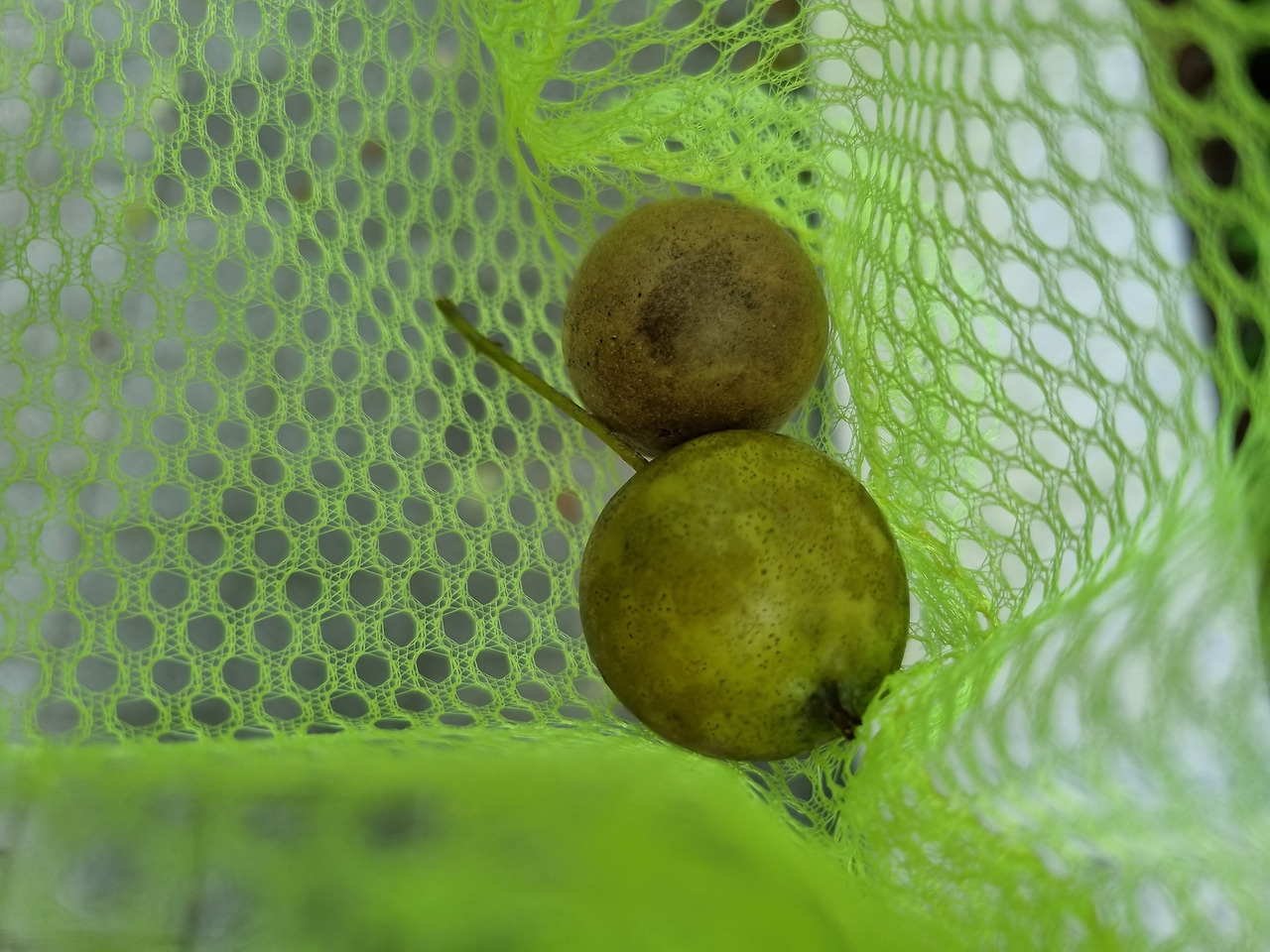 학교 캠퍼스에서 처음 만난 열매는 "벚잎꽃사과나무" 열매였다. 한울이 말대로 물이 흐르는 곳 근처에서 발견한 열매였다. 예쁜 이름을 가진 나무라서 한 번 반가웠고, 동글동글 꽃사과 모양이 귀여워서 또 한 번 반가웠다. 우리가 발견한 꽃사과열매는 지름 3-4cm 정도 크기의 아담한 초록과 갈색이 물감처럼 섞인 색깔의 열매였다. 경사진 곳에 이제 갓 떨어진듯한 탱탱한 열매가 있어서 한울이가 가져온 채집망으로 열매를 주었다. 처음 보는 열매를 눈으로 관찰하고, 꾹 한번 눌러도 보고, 향기도 맡으며 요리조리 살폈다. 한울이는 열매가 마음에 들었는지 벚잎꽃사과나무 앞에서 "오예~ 오예~" 흥얼거리며 춤을 췄다. 이럴 때에는 주변 눈치 상관없이 같이 신나게 춤을 춰야지. 덩달아 나도 "오예~ 오예~" 따라 하며 골반을 흔들었다.