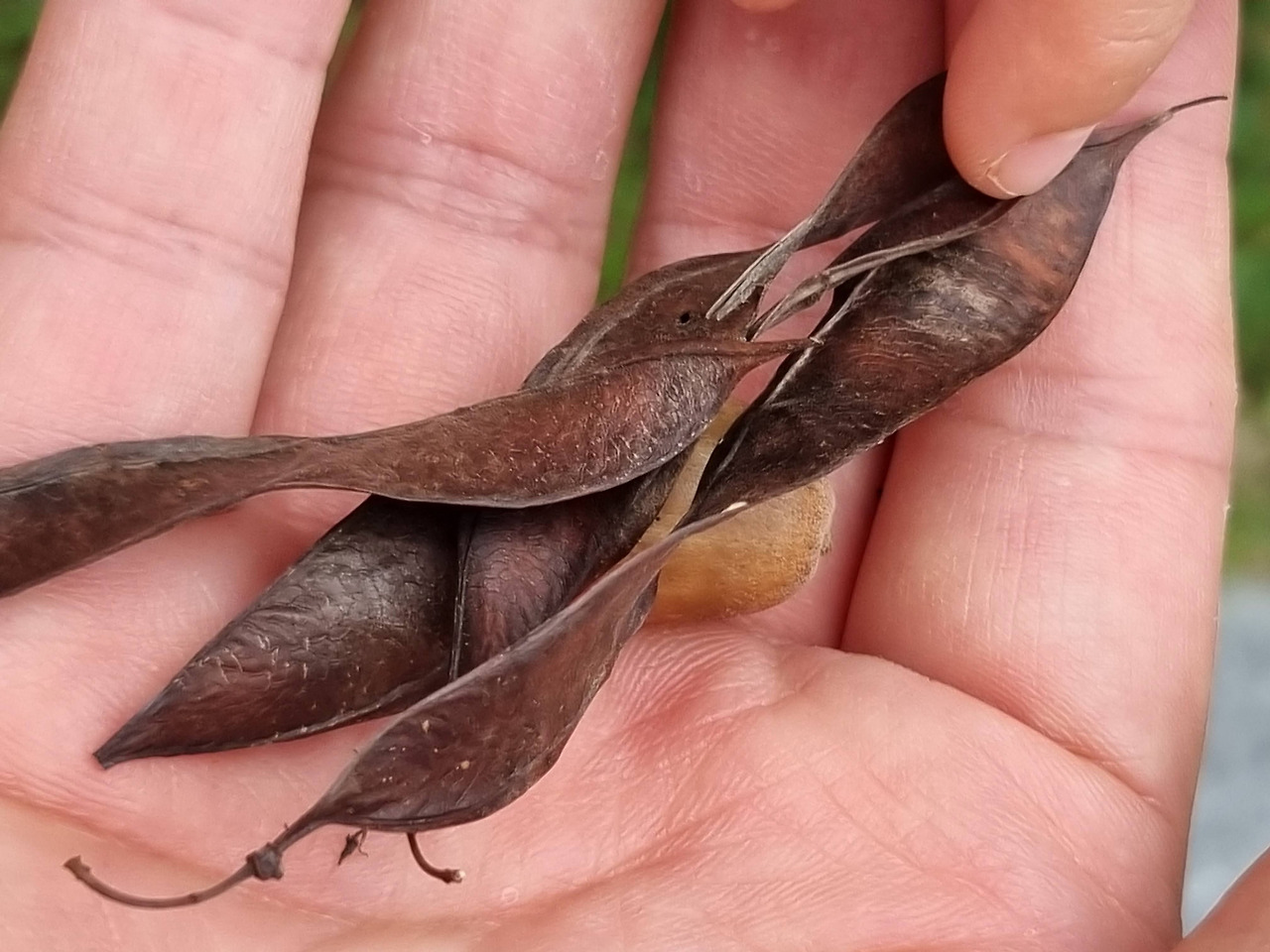 두 번째로 만난 열매는 "박태기나무" 열매였다. 벚잎꽃사과나무를 발견한 길을 따라서 주욱 올라가다 보니 얼마 안 가서 발견할 수 있었다. 박태기나무는 콩과 식물이다. 처음 보는 나무와 열매이지만 강낭콩과 모양은 비슷해 보였다. 그렇지만 색깔은 짙은 갈색에다가 말라비틀어진 건 확실히 달랐다. 박태기나무 열매는 흡사 떨어지기 직전의 단풍잎 같았다. 줄기에서 물을 공급받은 지 오래되었는지 아직 줄기에 매달려 있는 열매를 만져보니 바삭바삭했다. 단단하기도 해서 날카로운 칼 같은 느낌도 들었다. 박태기나무가 자란 땅 위에는 박태기나무 열매가 우수수 떨어져 수북이 쌓여 있었다. 내가 열매를 주으려고 하자 한울이는 "내가 주을게!"라고 말하며 자기 마음에 드는 열매들을 골라 내 손에 건네줬다.