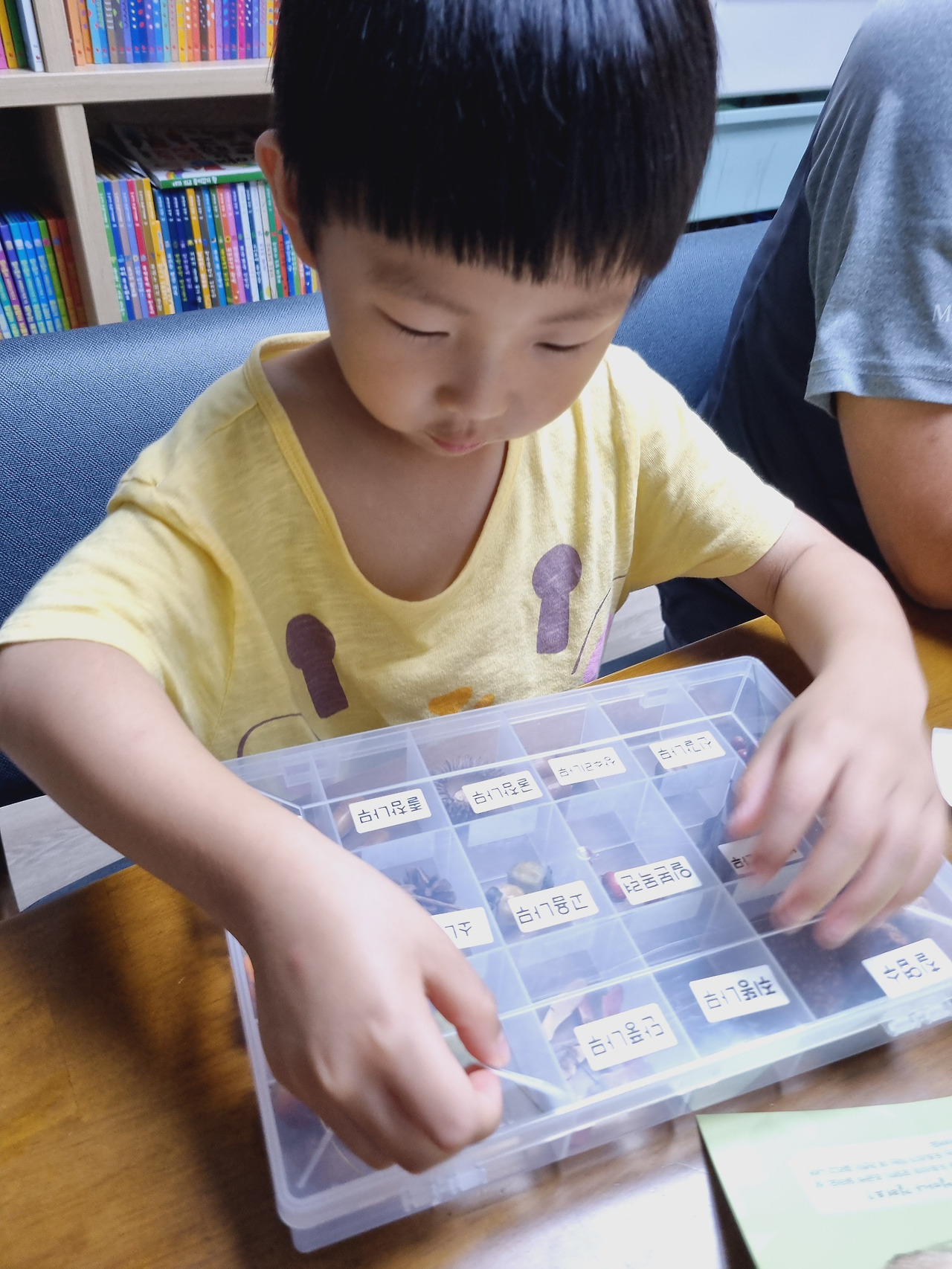 어느 날 보니 아내가 사 온 플라스틱 상자 안 구획마다 나무 열매들이 종류별로 자리를 잡고 있었다. 종류는 달랐지만 흐벅진 모양을 보니 아내와 한울이가 고심해서 고른 상태 좋은 열매들이라는 걸 알 수 있었다. 색깔도 알록달록 해서 가을에 볼 수 있는 색깔을 담아 놓은 느낌이었다. 상자를 보며 아내한테 "이거 뭐야? 왜 이렇게 예뻐?"라고 물었다. 아내는 "아~ 이거? 한울이의 가을 상자야. 한울이랑 밖에 나갈 때마다 가을 나무 열매들 떨어져 있는 거 주어 왔거든. 한번 모아 보려고."라고 답했다. 박물관에서 곤충들 박제해 놓은 건 봤어도, 가을 나무 열매를 모은다는 건 생각도 못했던 일이었다. 그런 흥미진진한 놀이를 하고 있었으면서 나한테 알려주지 않은 게 섭섭했다. 물론 내가 하도 바쁜 척을 하니까 아내는 굳이 알려주지 않은 것 같다.