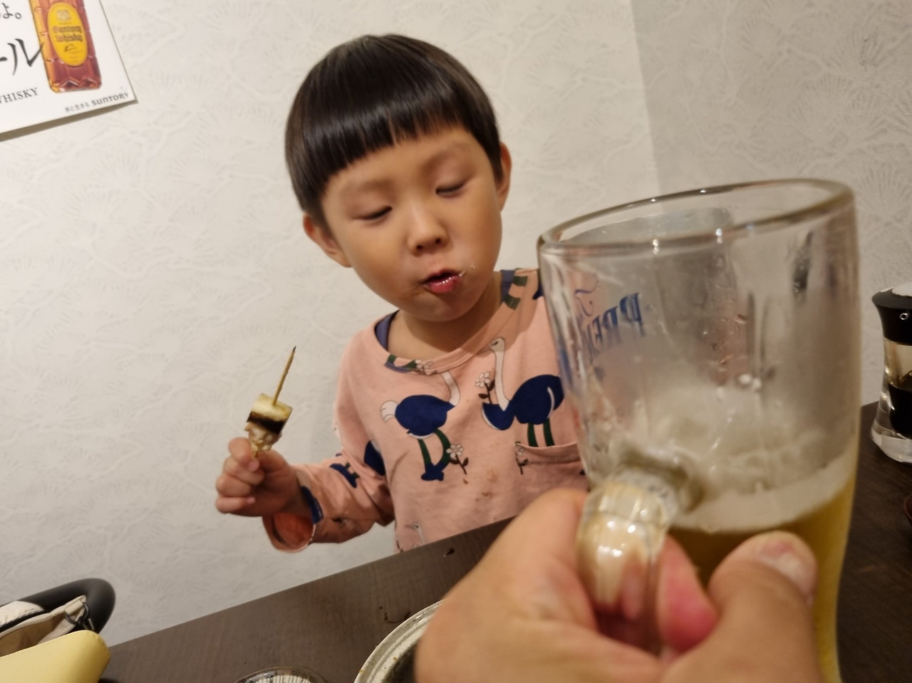맥주 마시려는데 한울이가 자기 컵 들더니