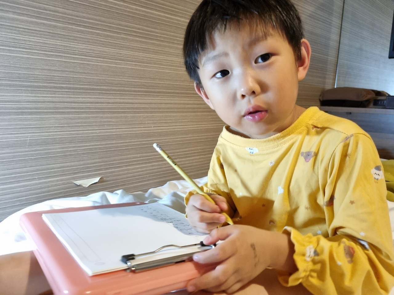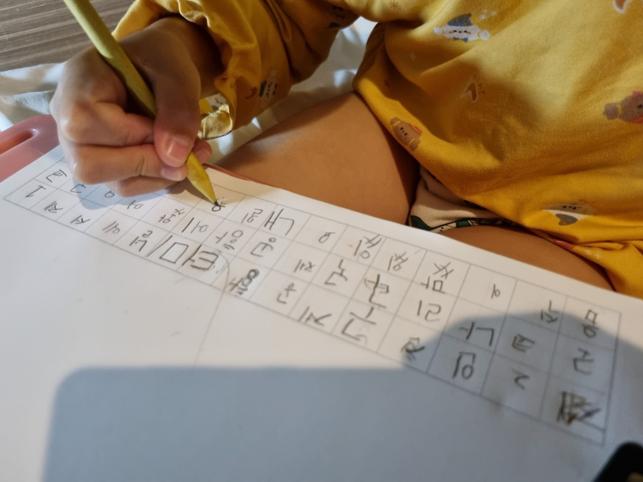 색종이 접기, 이상한 글씨 쓰기, 그림 그리기 등