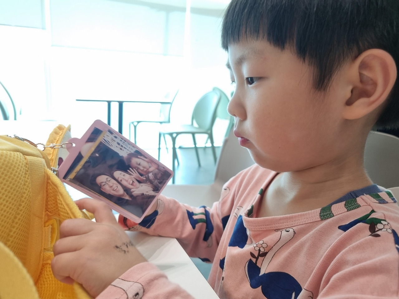 가방에 달아 준 가족사진을