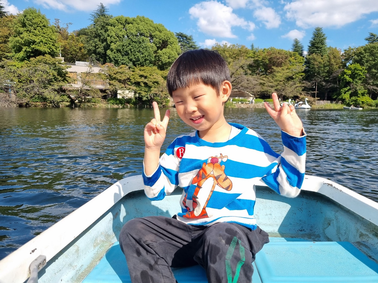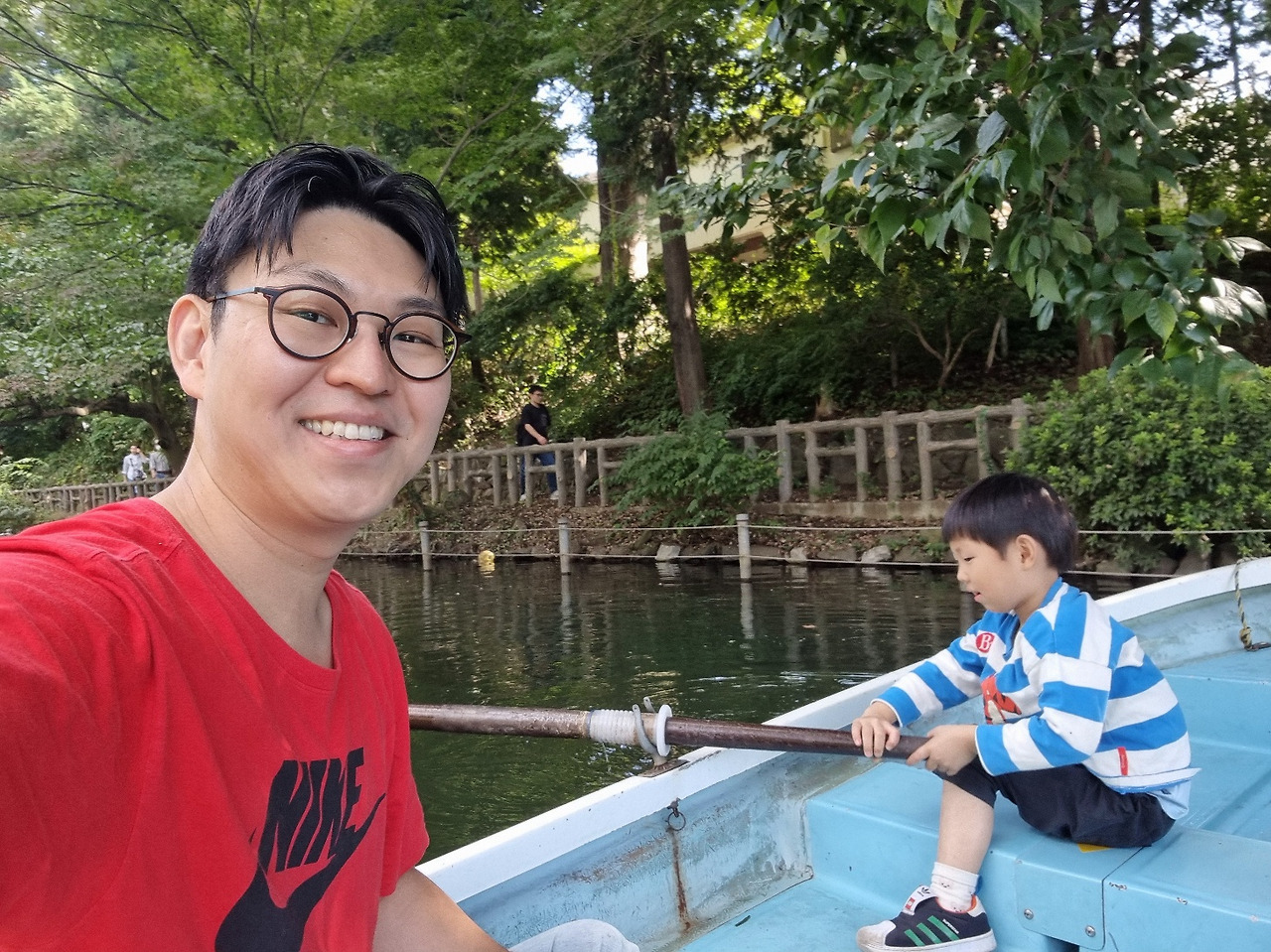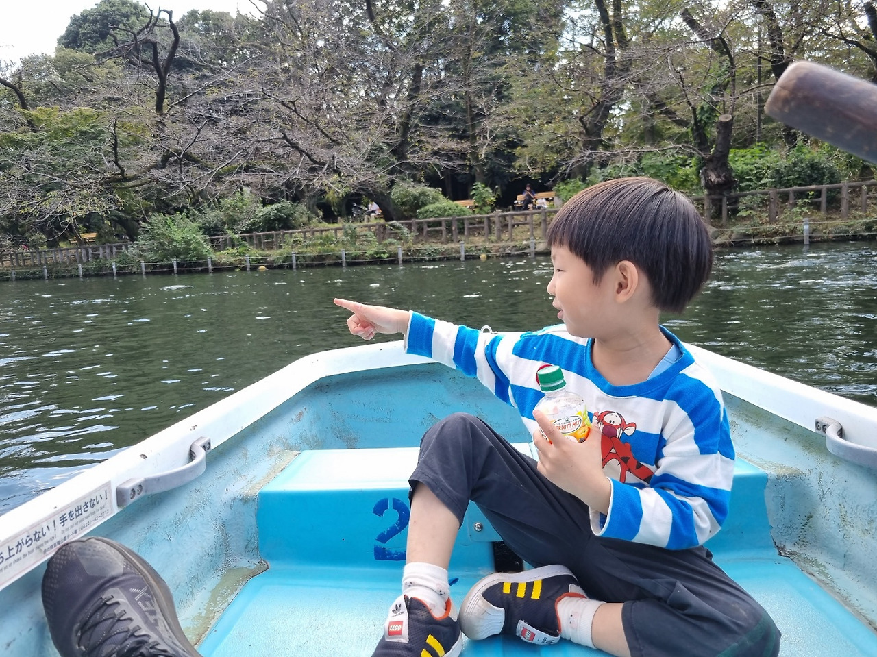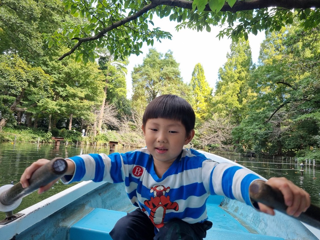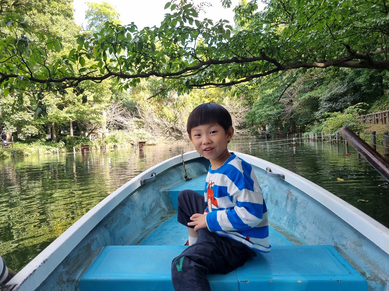 오늘은 날씨가 선선해서 노 젓는 배를 탔답니다.